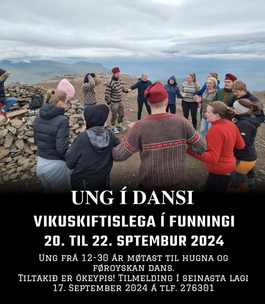 Vikuskiftið 20.- 22.septembur 2024 verður skipað fyri tiltakinum Ung í Dansi í Funningi. Her møtast ung í aldrinum 12 til 30 ár at dansa føroyskan dans saman. Hetta er afturvendandi tiltak, ið Ung í Dansi, ungdómsfelagið hjá Sláið Ring, skipar fyri á hvørjum árið.