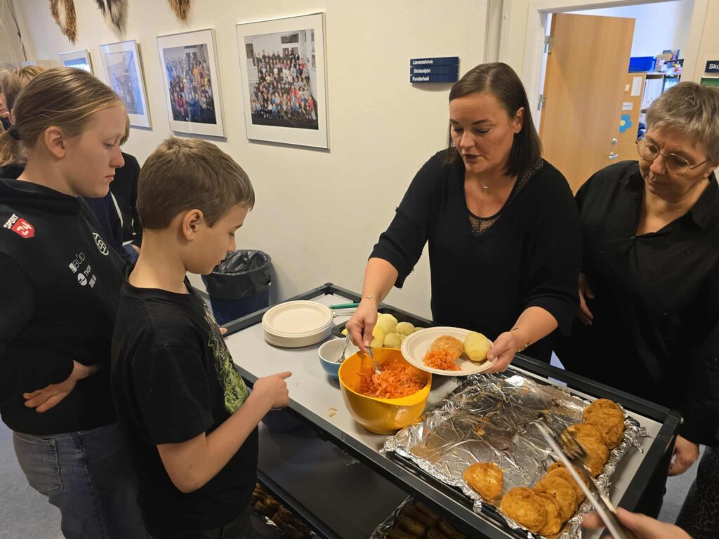 Fríggjadagin 31. oktober var hátíðardámur í Eiðis skúla í samband við at skúlin er vorin 60 ára gamal. Hátíðarhaldi byrjaði klokkan 10 við at Tom Joensen, skúlastjóri, bjóðaði vælkomin. Eftir hetta vóru fiskafrikadellur og epli á skránni. Epli høvdu næmingarnir sjálvir velt.