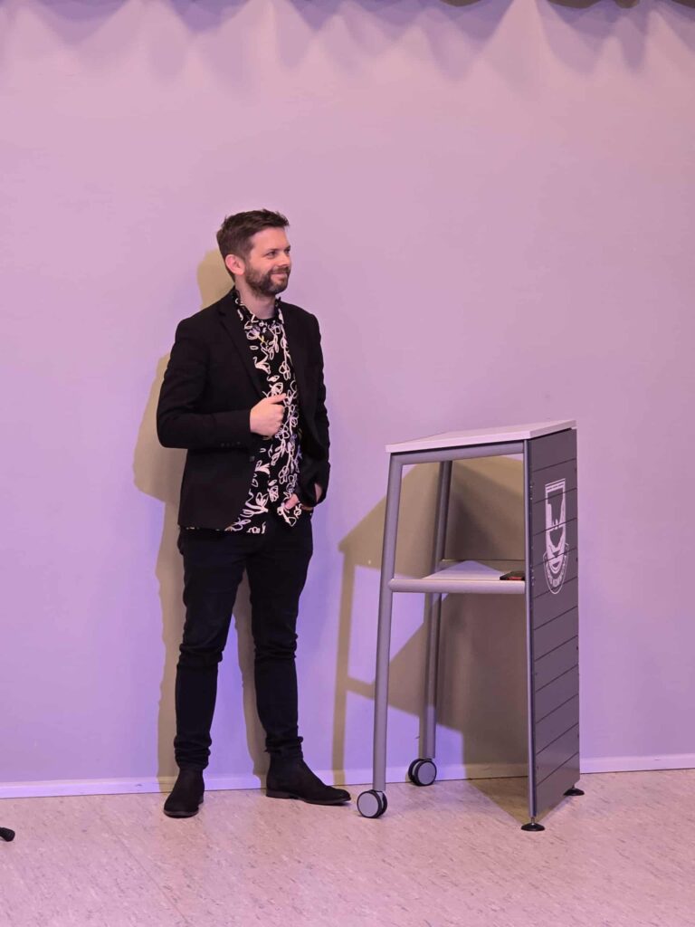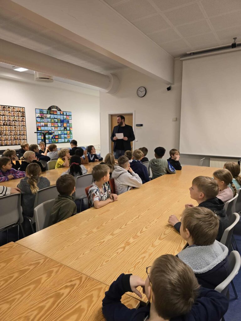 Jógvan í Skorini, borgarstjóri, segði nøkur orð og handaði næmingaráðnum eina gávu, ið skal koma øllum skúlanum til góðar.