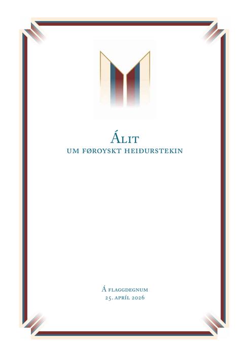 Á flaggdegnum 25. apríl 2026 fekk løgmaður handað álit frá nevndini, sum hevur havt til uppgávu at gera uppskot um eina skipan við føroyskum heiðurstekni.