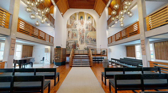 Við nýggju tænastuni hjá Fólkakirkjuni fer at bera til at vitja føroysku kirkjurnar innan, á eini sonevndari tykisferð – einari virtuellari ferð, har tú á teldu ella telefon kanst flyta teg runt í kirkjuni og síggja 360 gradir runt um teg sjálvan, har tú ert. Eisini eru kunnandi upplýsingar um ymsu lutirnar í kirkjuni – á føroyskum og enskum.