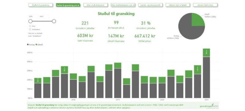 Samvirkið yvirlit við játtaðum stuðli 2006-2025