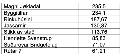 Nærri útgreining av úrslitunum er at finna á heimasíðuni hjá Føroya Bridgesambandi: