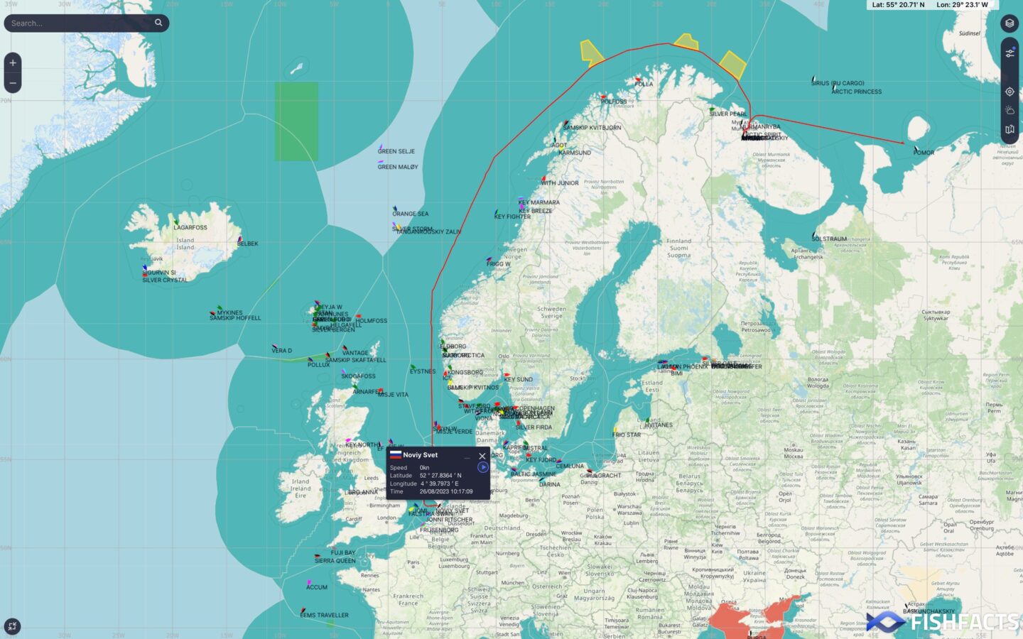 Russisk fraktskip sigla beinleiðis úr Murmansk til havnir í ES. Soleiðis skrivar Fishfacts á heimasíðu síni, har mynd av siglingarleiðini eisini er viðfest. Og sum skilst, so er hetta ikki eitt eindømi. Og langt frá tí.