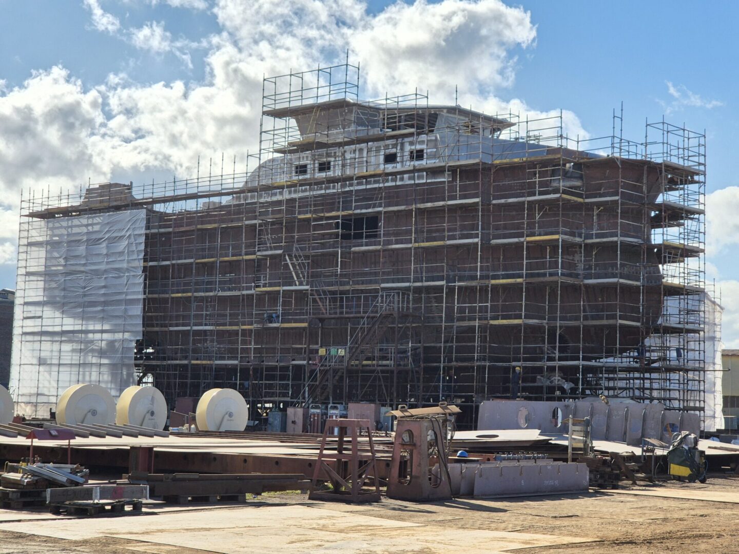 Varðin skrivar, at skipið verður góðar 44 metrar langt og slakar 12 metrar breitt. Skrokkurin verður bygdur á Stozcnia Wisla skipasmiðjuni í Gdansk í Póllandi. Nú eru allar stáleindirnar komnar saman og formurin á skrokkinum sæst.