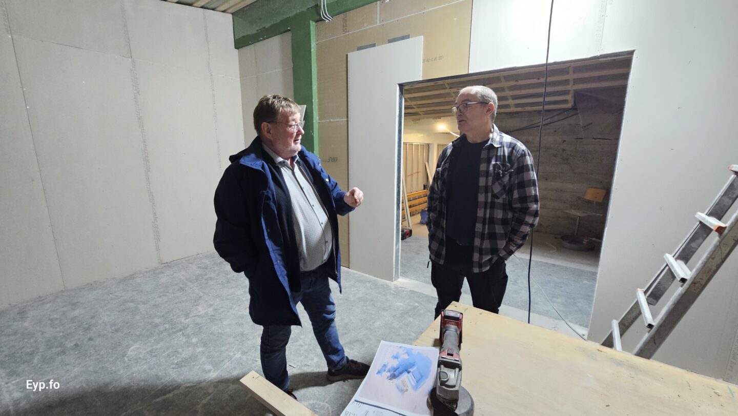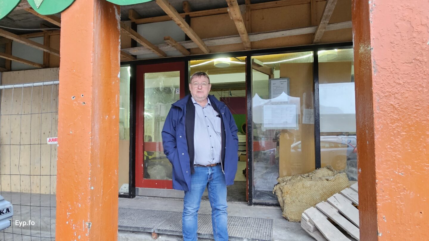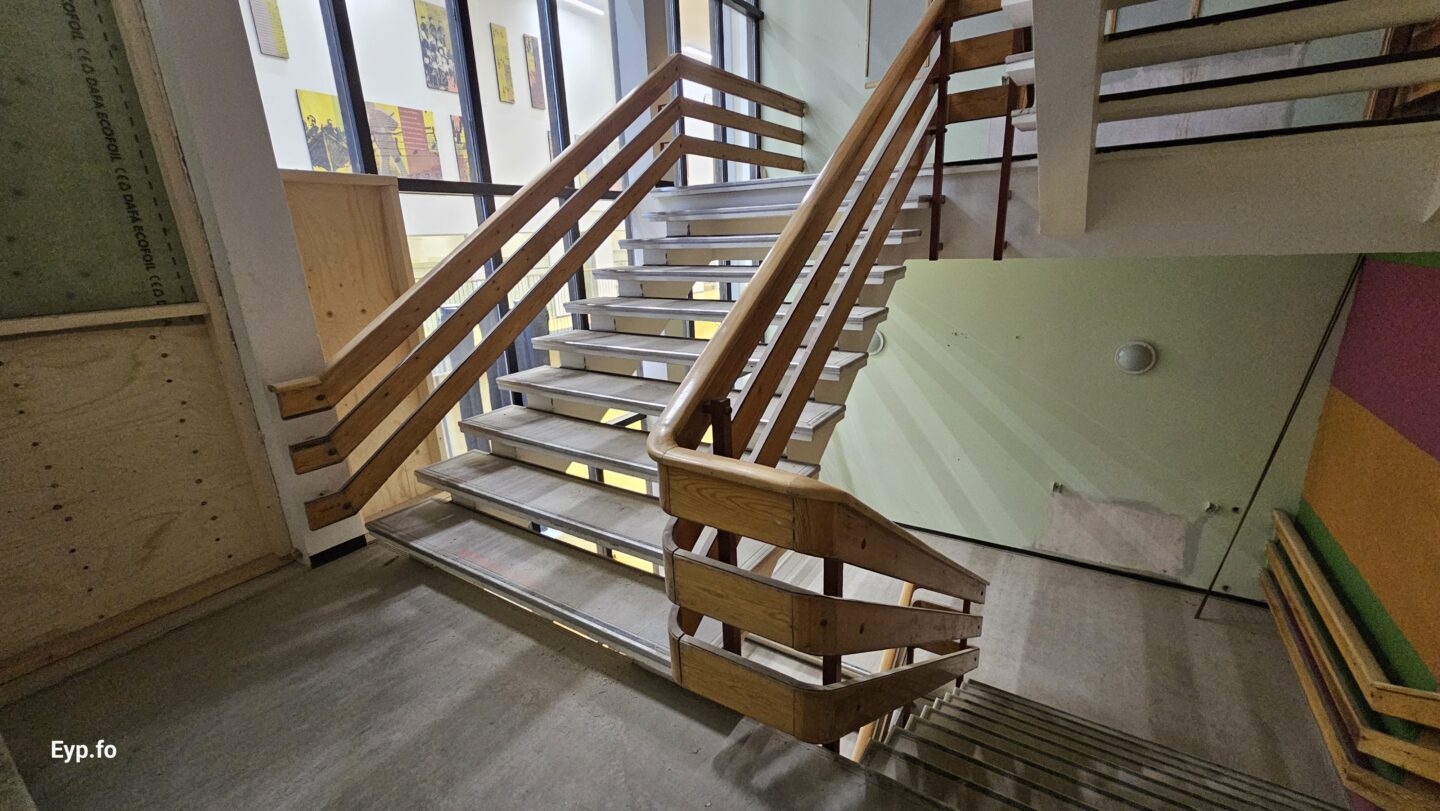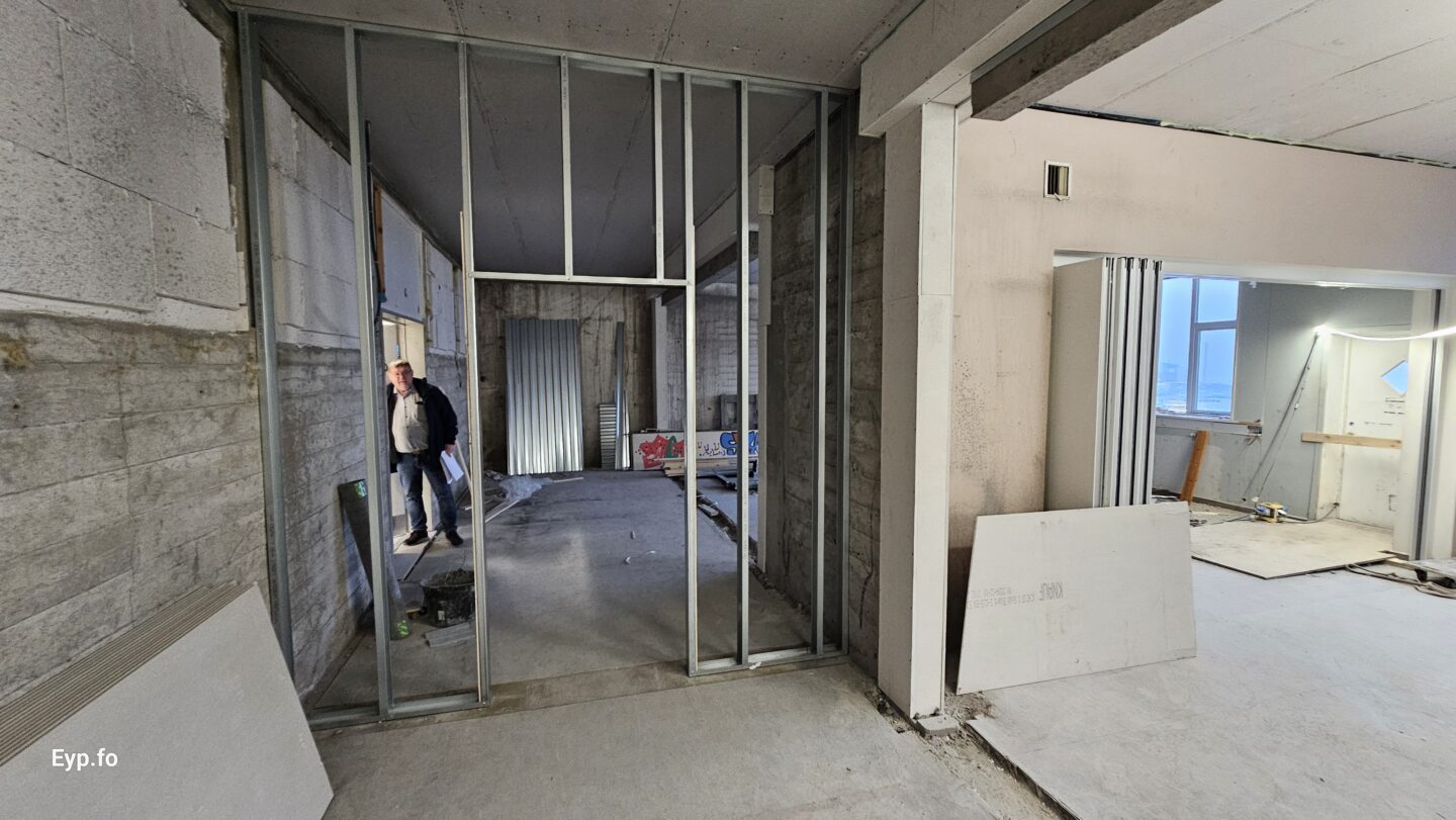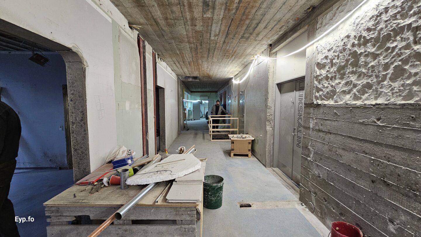 Og í 2023 varð so farið í holt við sjálvt arbeiðið. Byggningurin er bygdur í 1964 og er sostatt yvir 60 ára gamal.