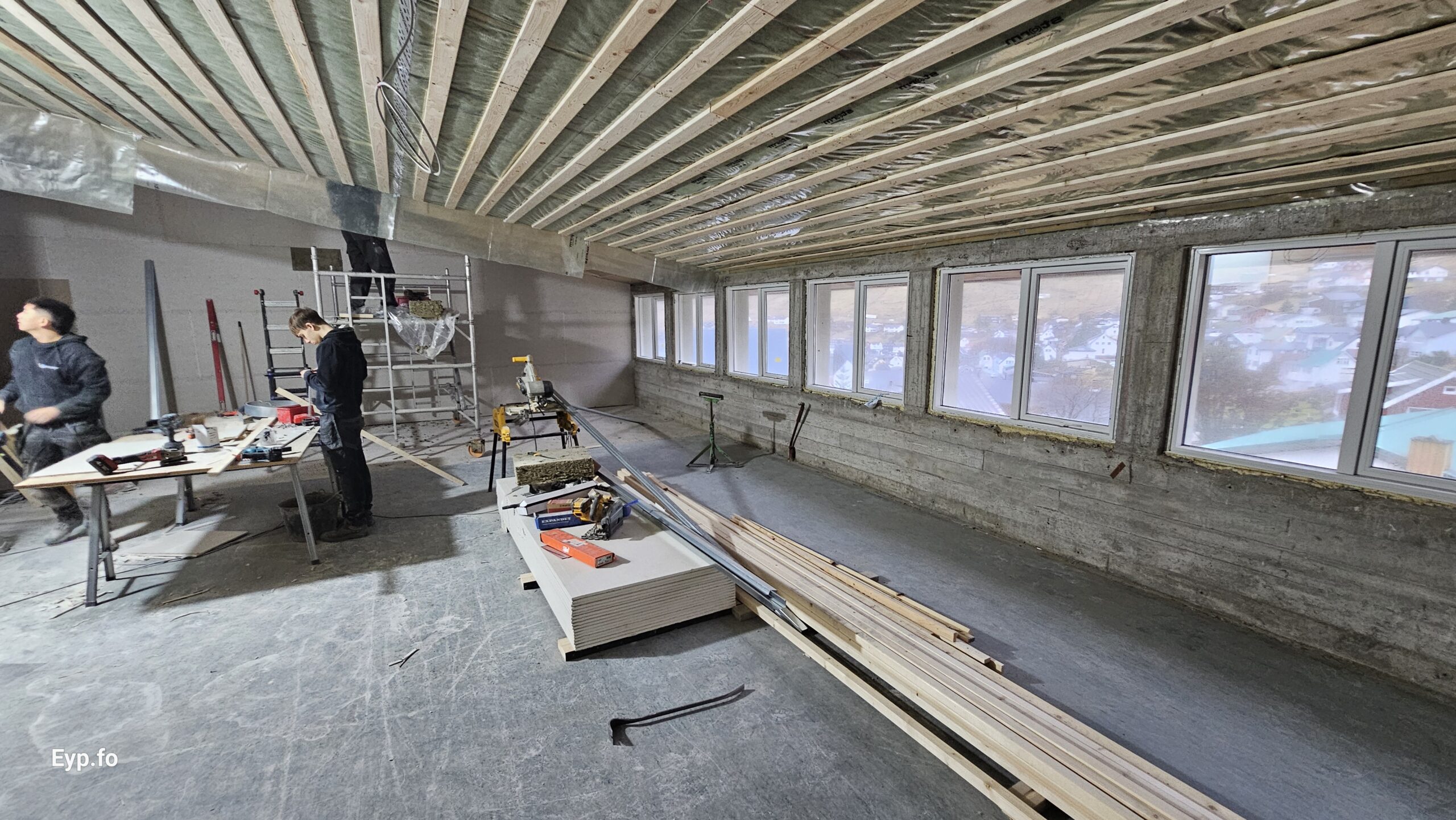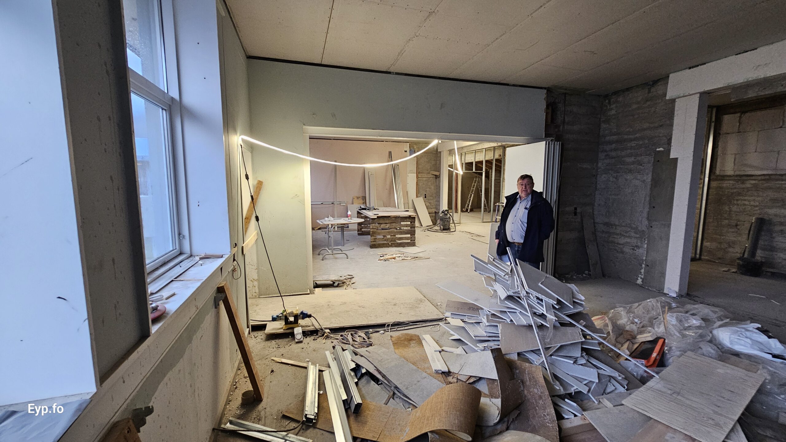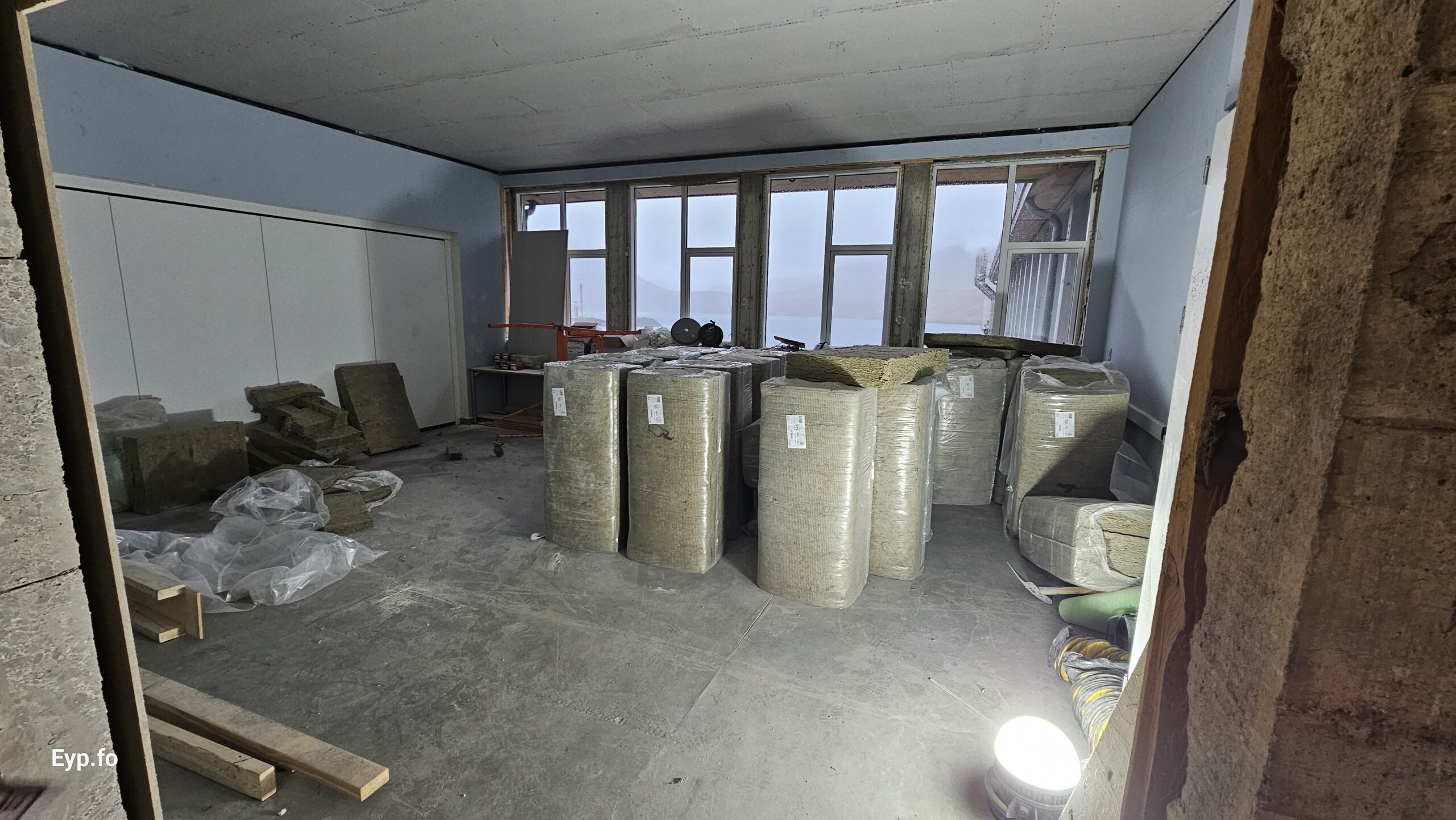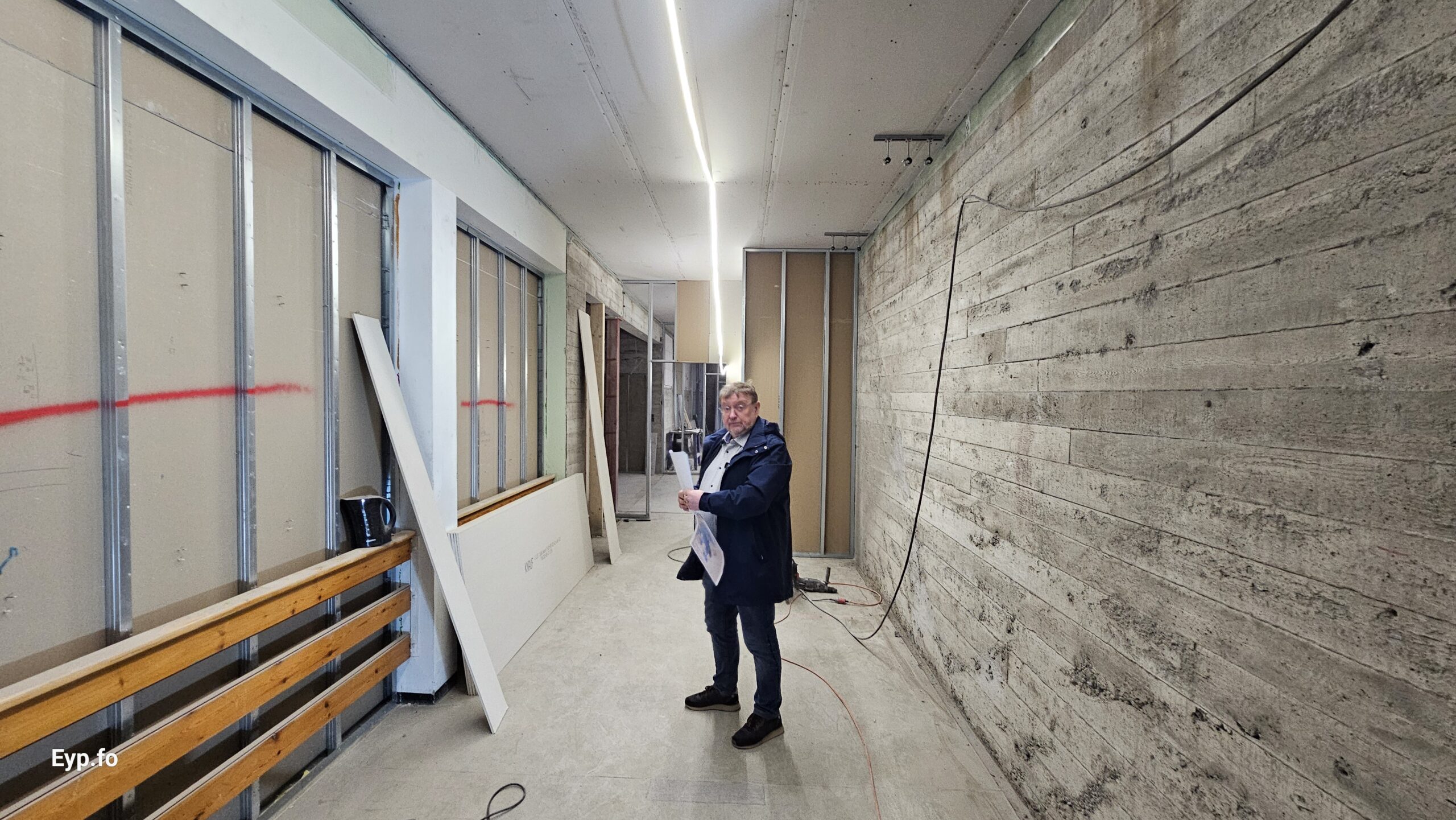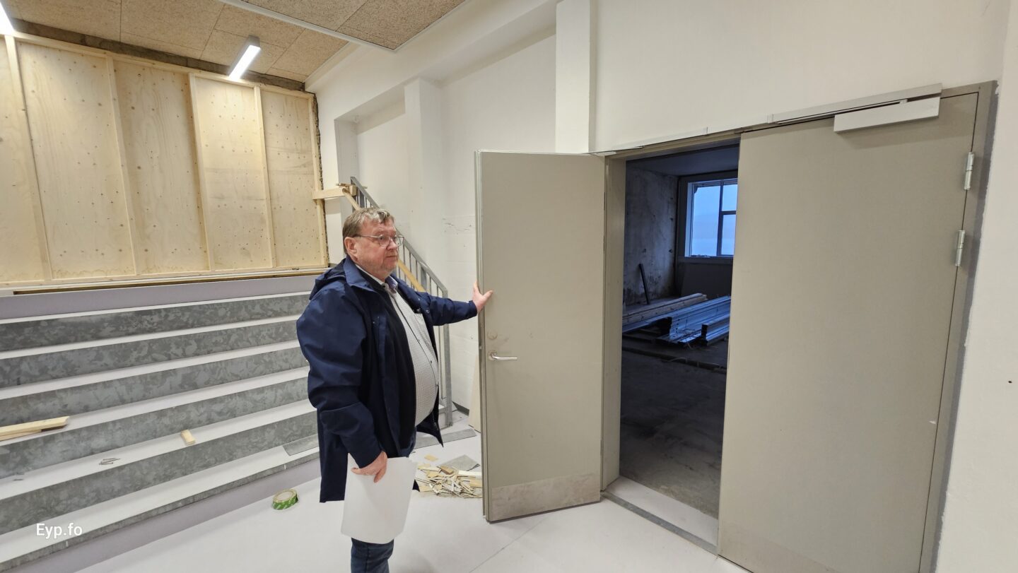 Og í 2023 varð so farið í holt við sjálvt arbeiðið. Byggningurin er bygdur í 1964 og er sostatt yvir 60 ára gamal.