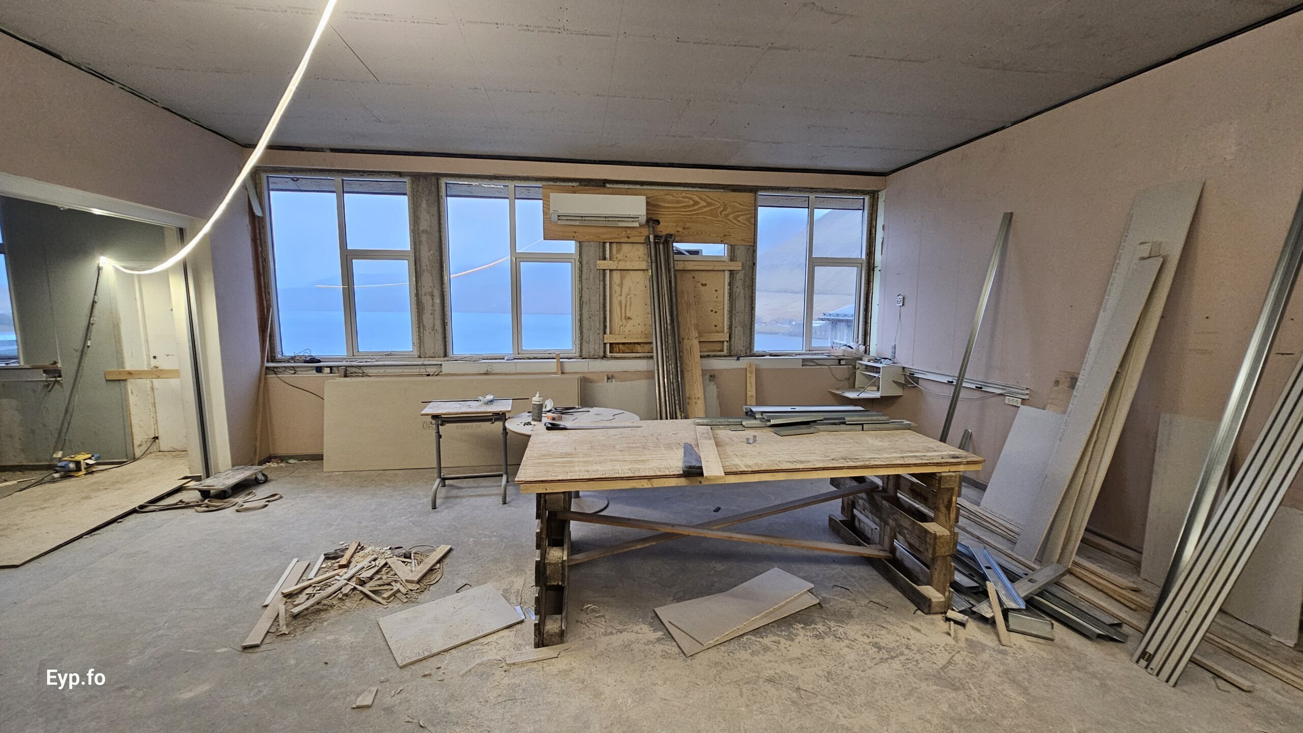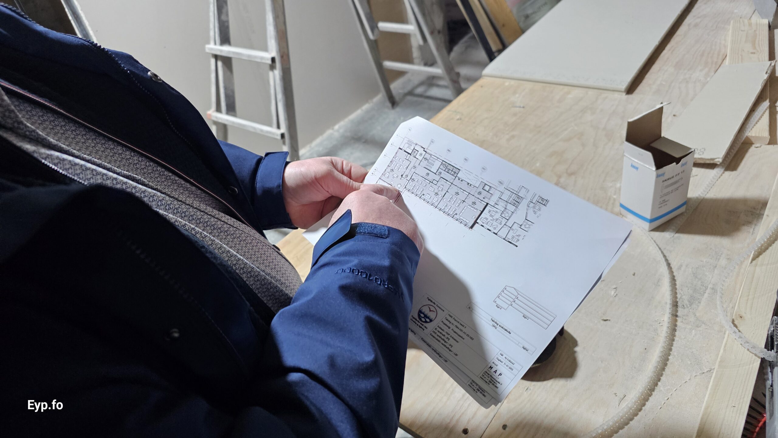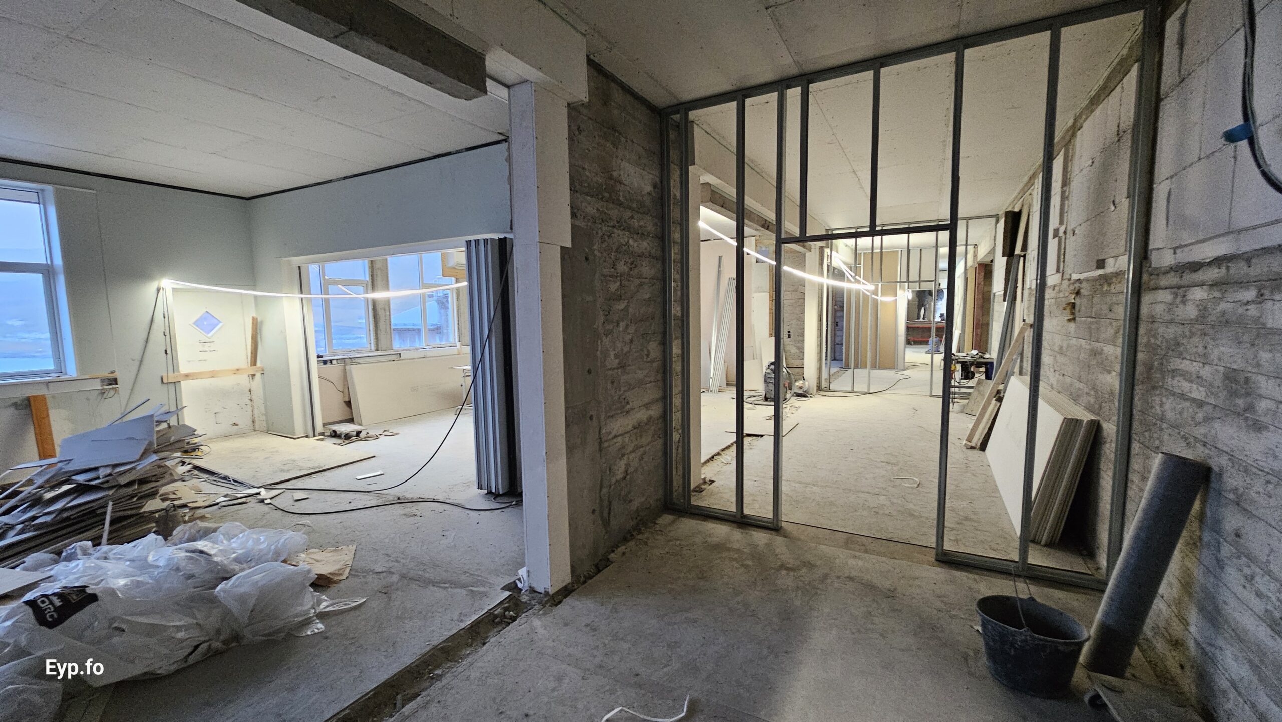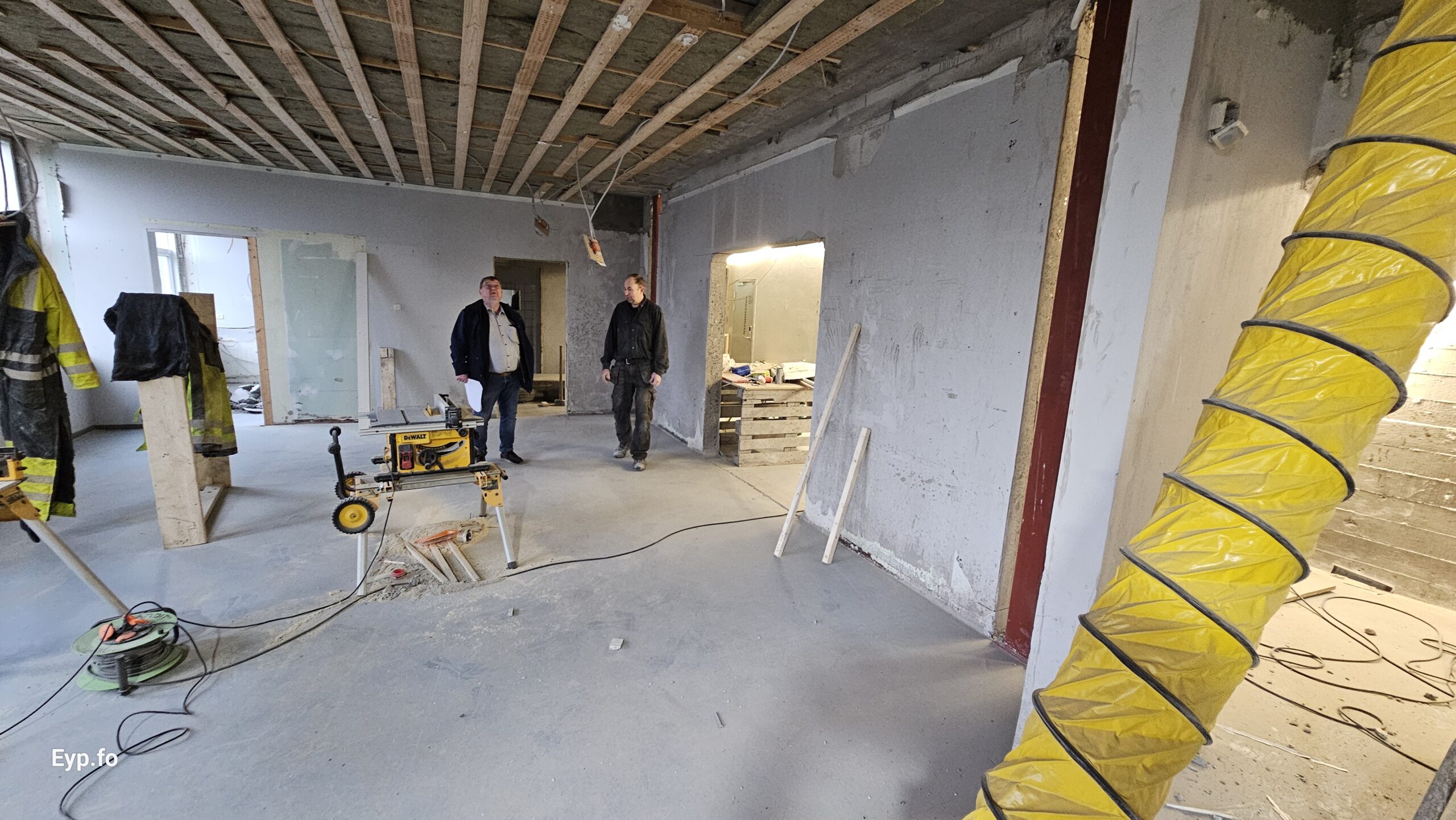 Og í 2023 varð so farið í holt við sjálvt arbeiðið. Byggningurin er bygdur í 1964 og er sostatt yvir 60 ára gamal.