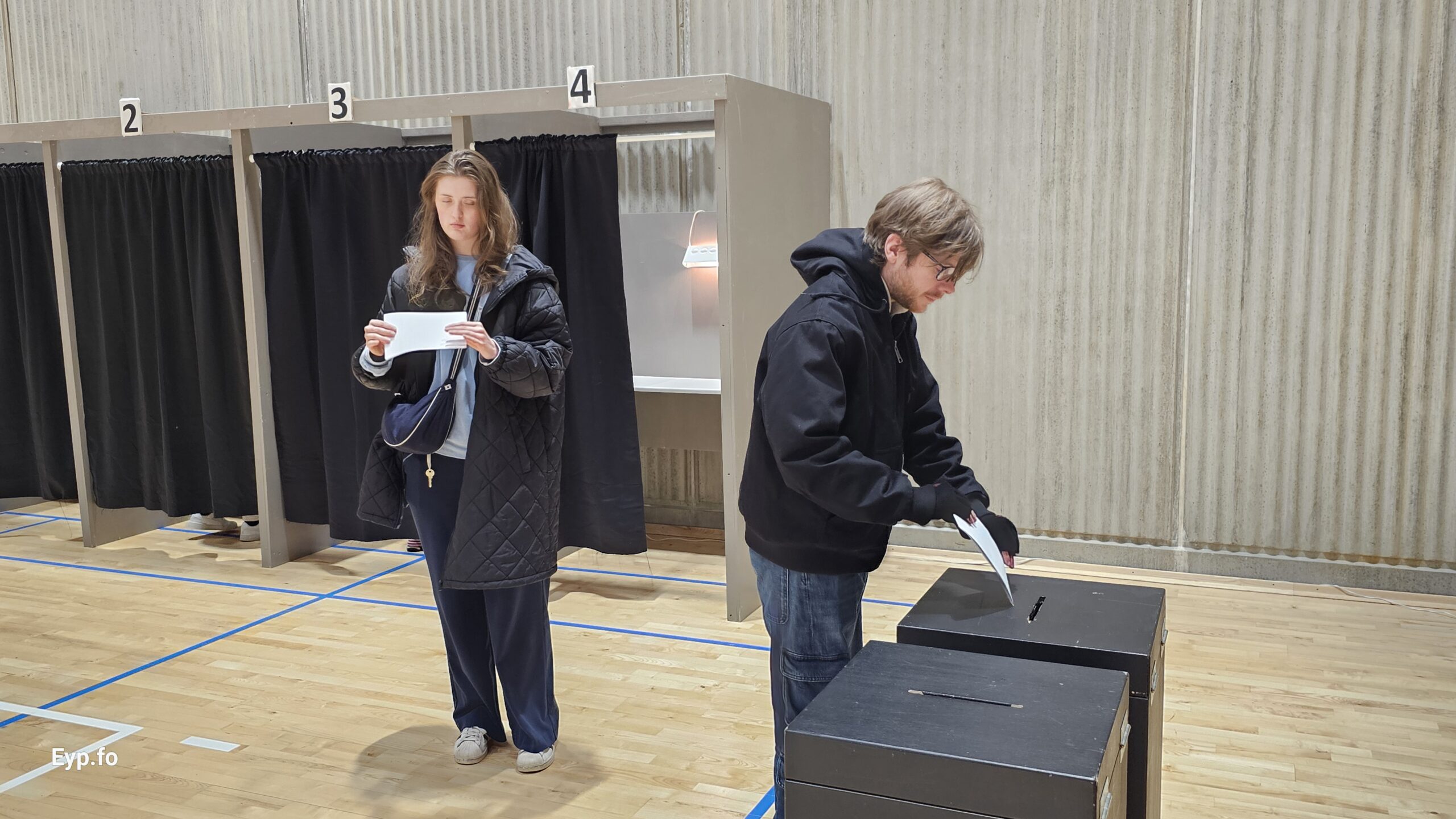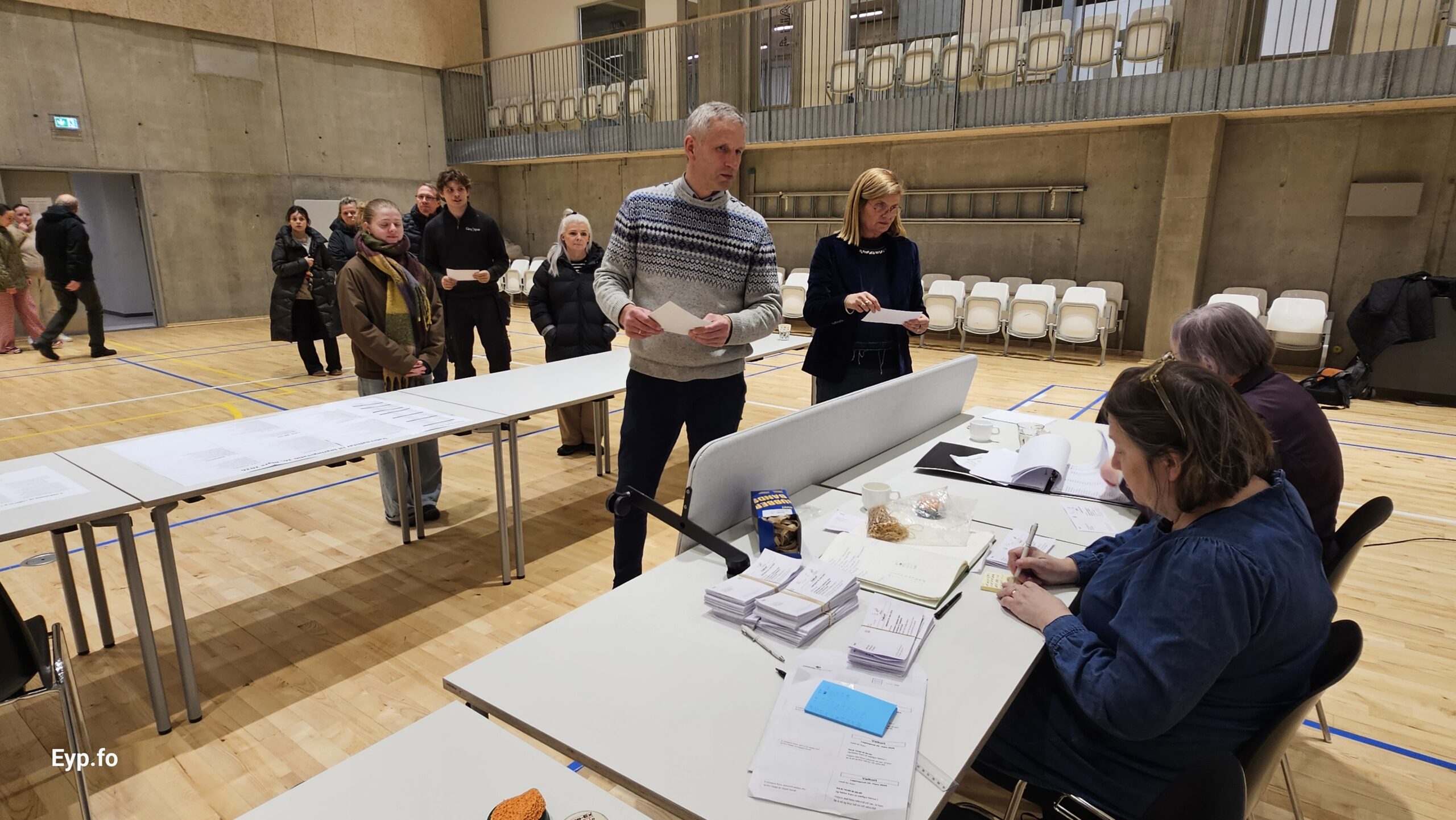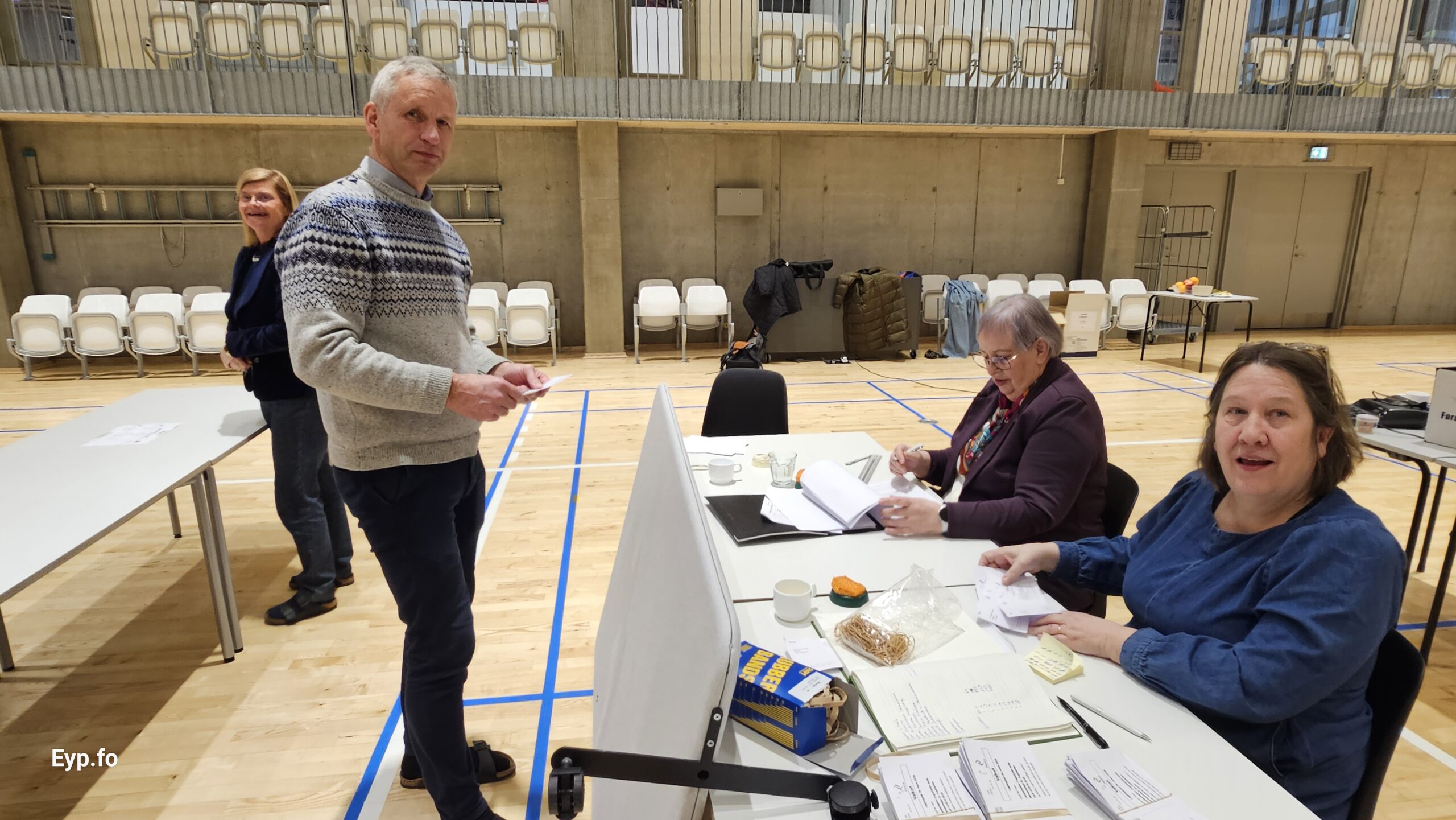 Eyp á valferð: Í Fuglafirði velja tey í nýggju ítróttarhøllini (myndir)
