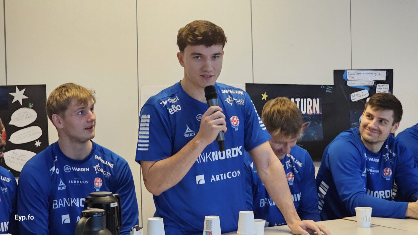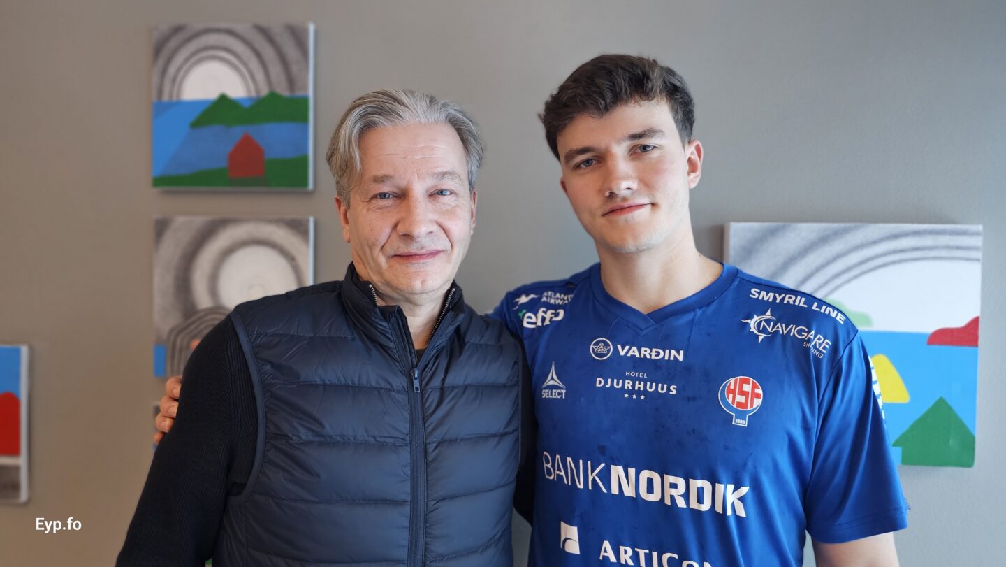 Tá ið hondbóltslandsliðið hjá monnum í gjár vitjaði í skúlanum við Gøtugjógv, var eisini ein fyrrverandi næmingur og syðrugøtumaður og heilsaði uppá sonin hjá sær.