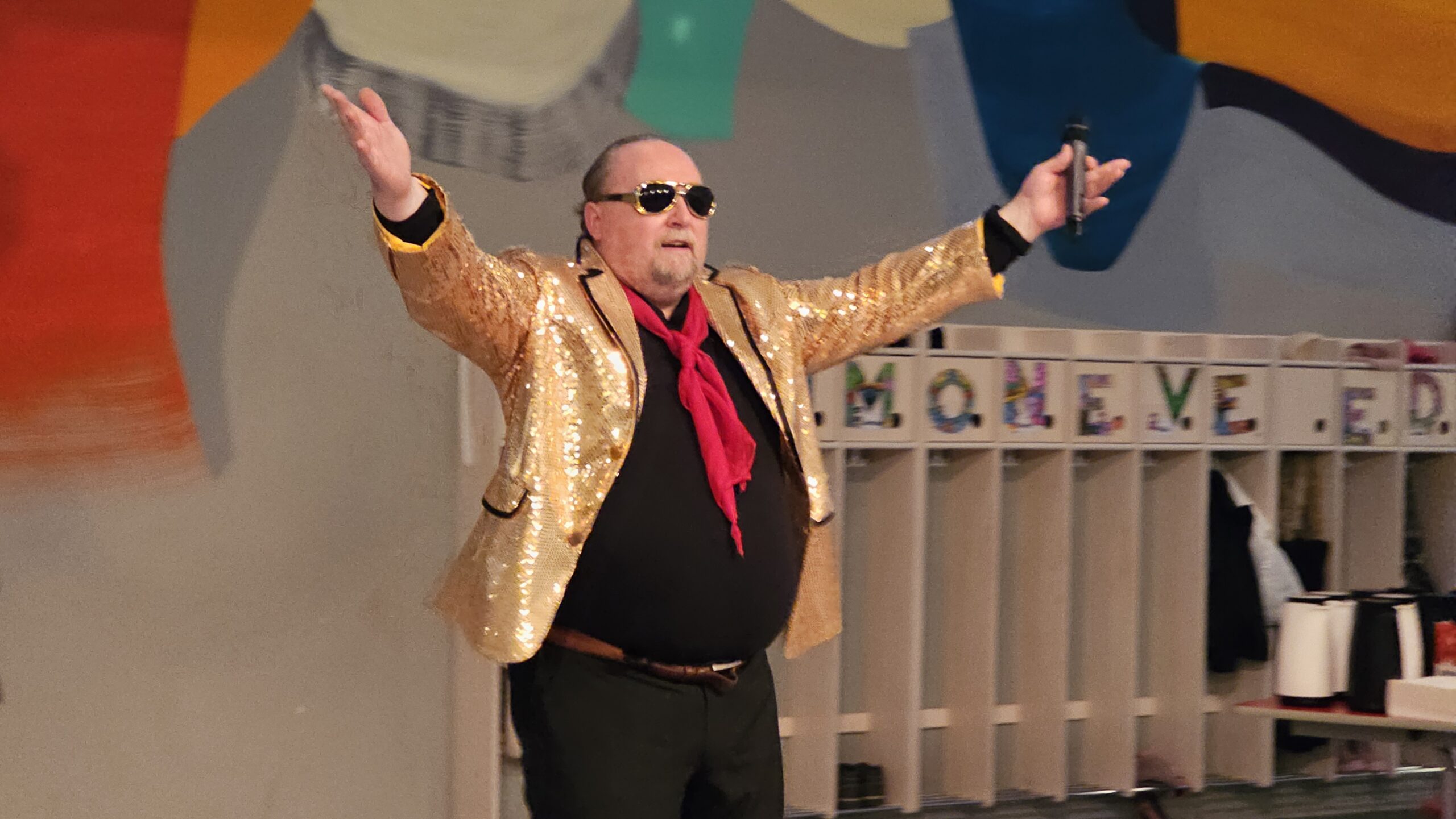 Í dag var alment hátíðarhald fyri Jóannesi Joensen, eisini betri kendur sum Bass Elvis, í miðhøllini í skúlanum, í heimbygdini Leirvík, eftir at hann vann heiðurin Ársins útvarpshitt við sanginum Tú skal syngja tær ein sang.
