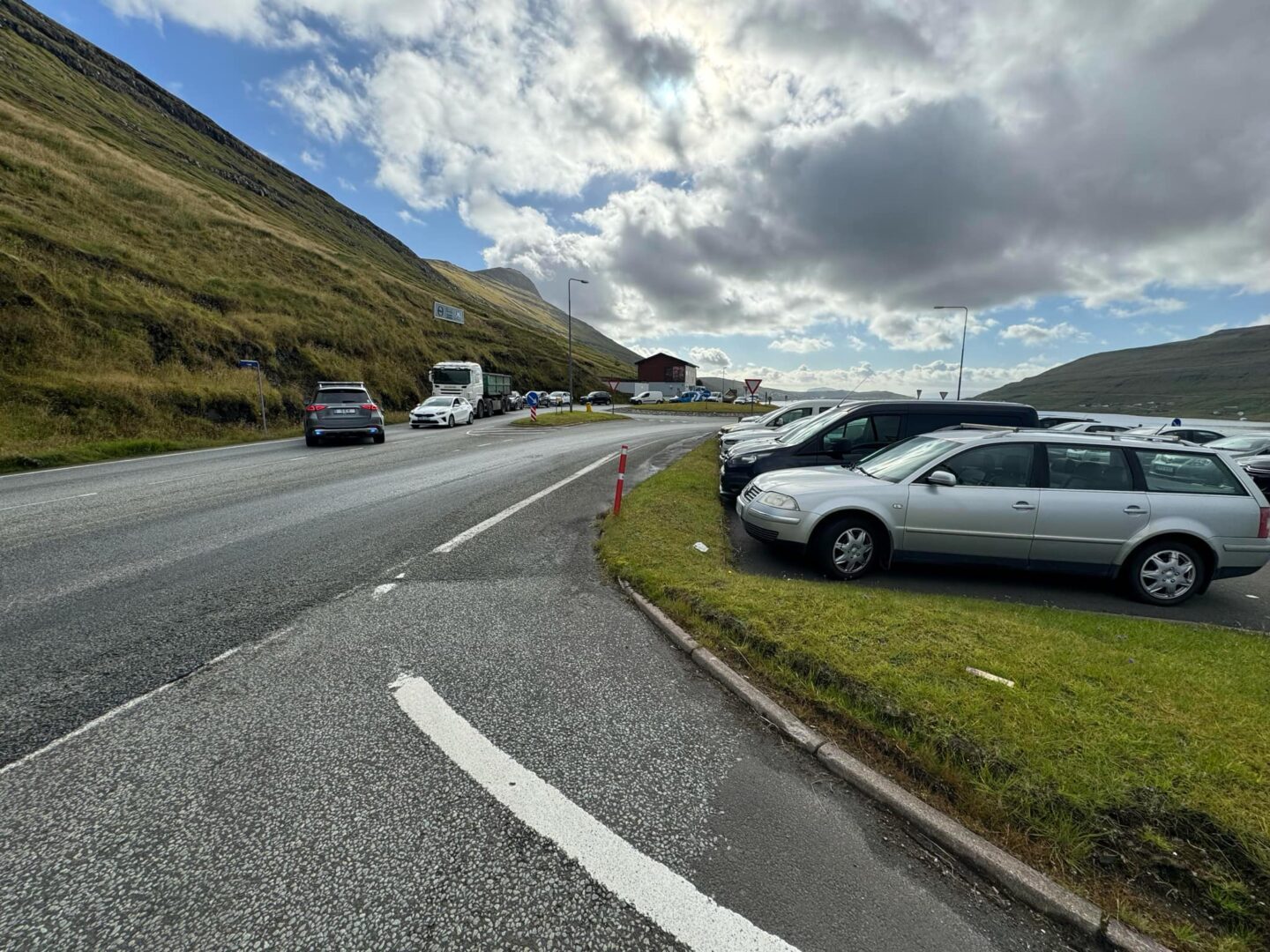 Sum skilst, er nógv fiskaolja runnin úr einum bili, og er tískil fiskaolja á vegnum heilt frá rundkoyringini í Leirvík og heilt út til rundkoyringini á Skipanesi.