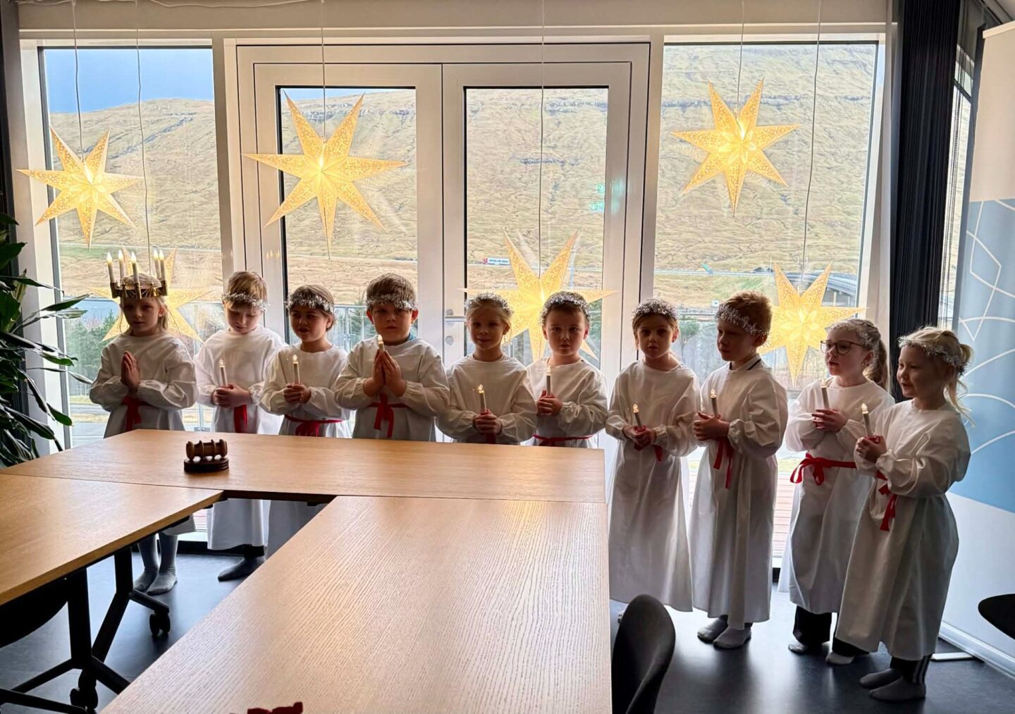 Sum siður hevur verið seinastu árini, so var elsti árgangurin á dagstovninum við Kráir og gekk lucia fyri okkum í morgun. Tíggju sera fitt og røsk børn, ið dugdu so væl at framføra.