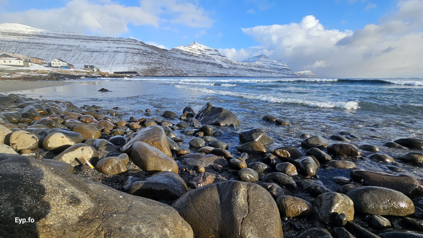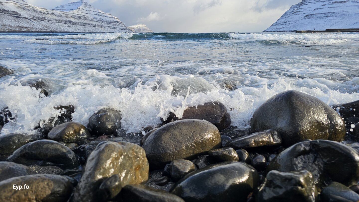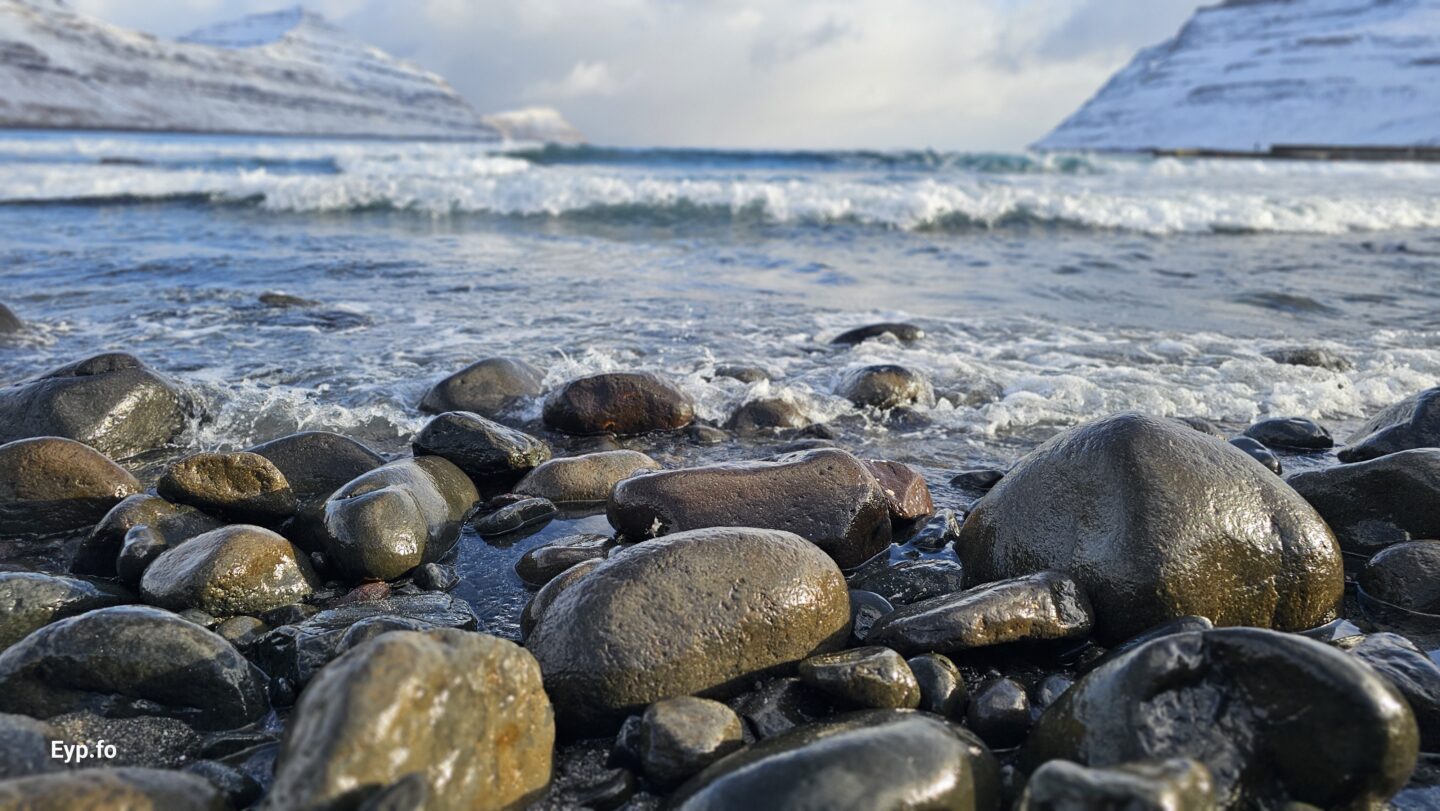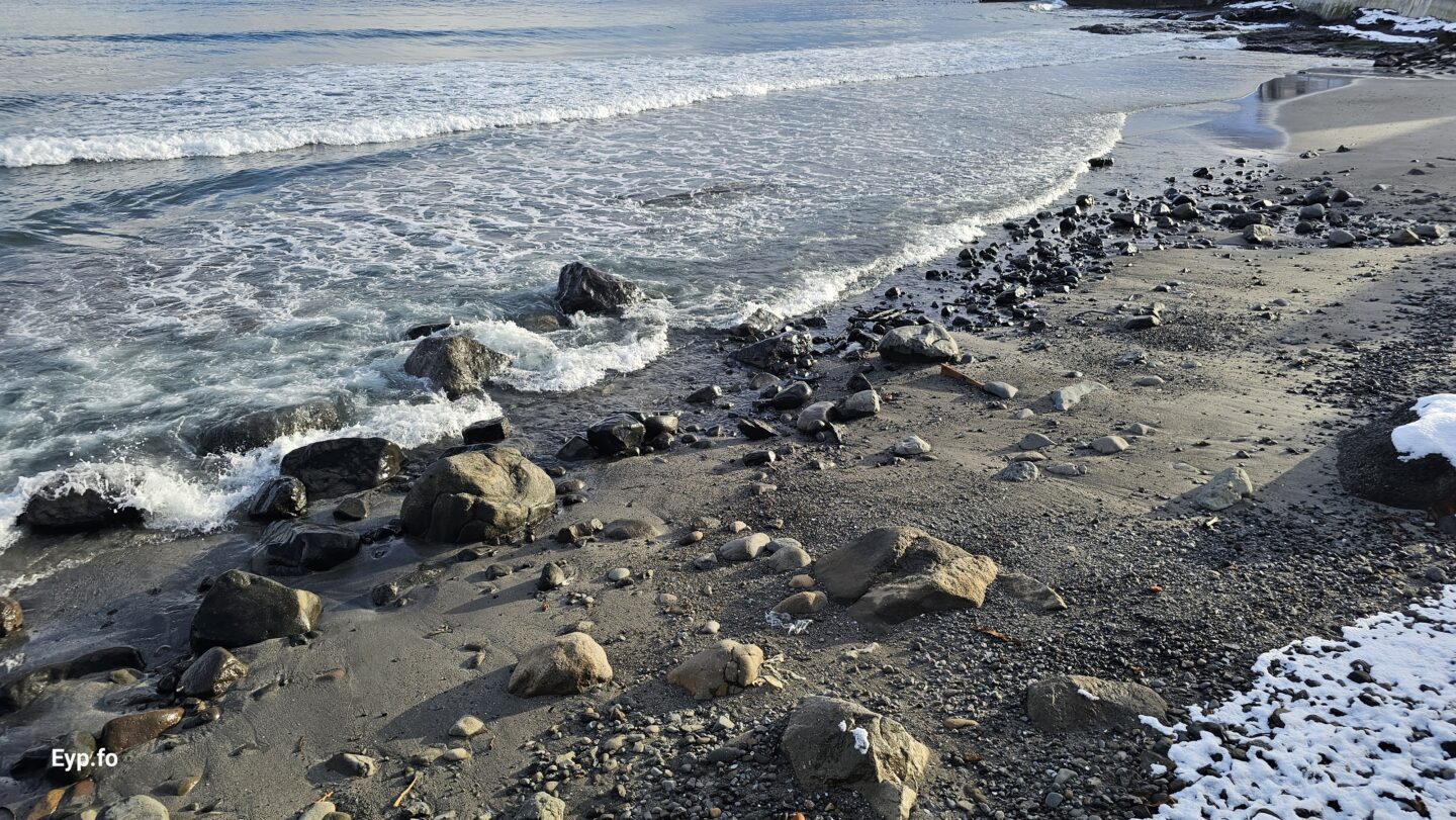 Fjalt grót komið undan kavi eftir nógv brim (myndir)