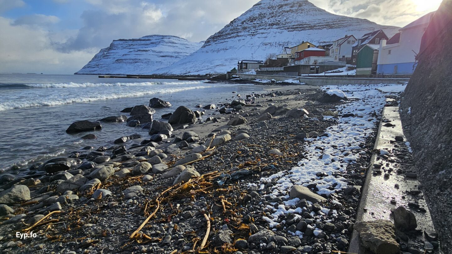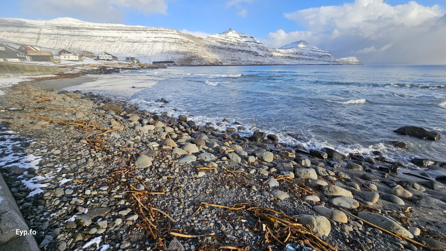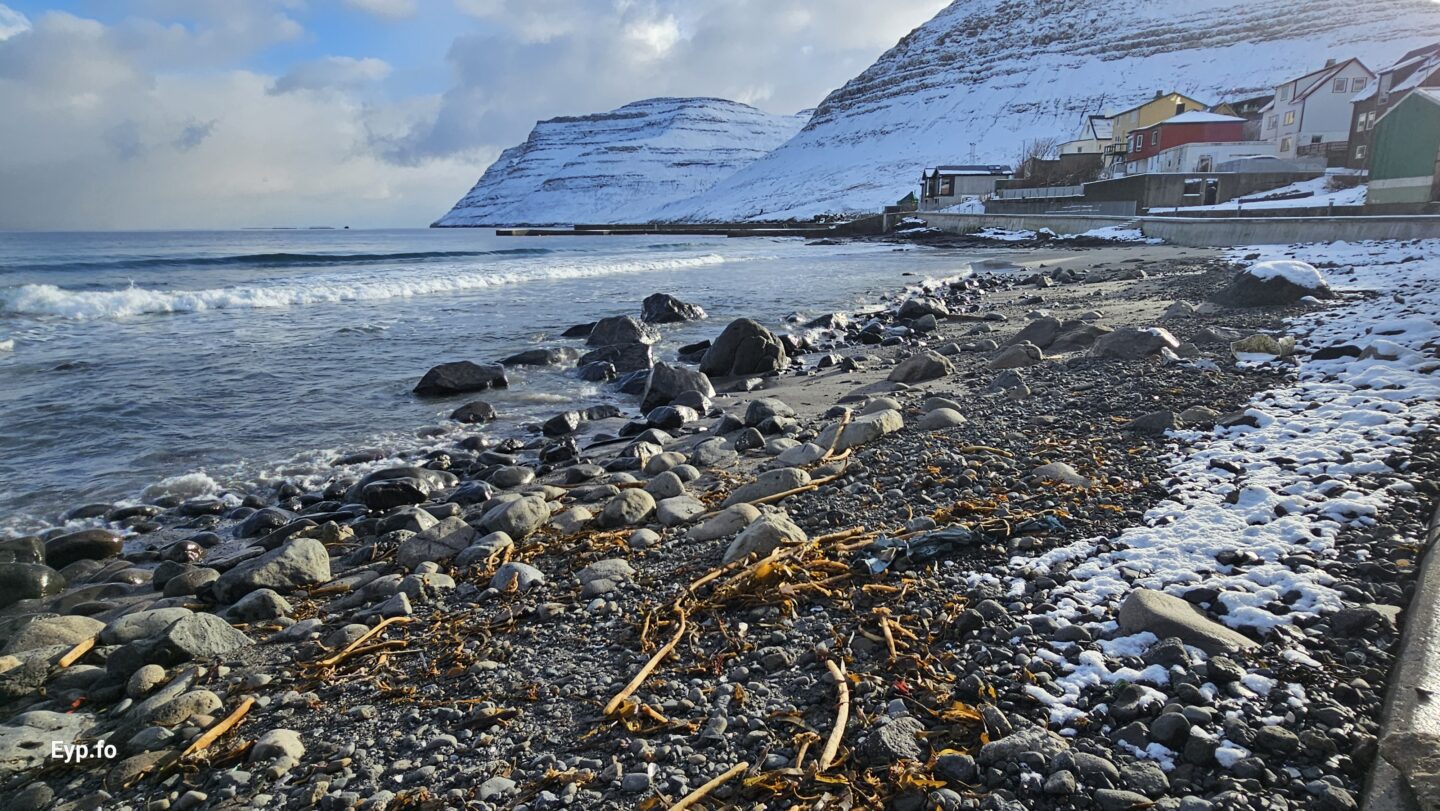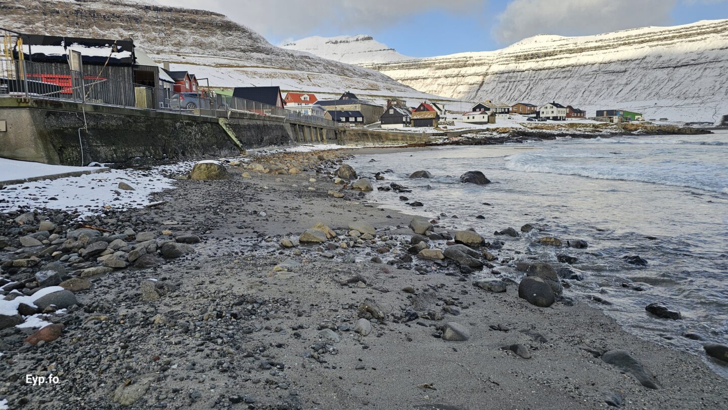 Landsynningur og nógv brim seinastu nógvu vikurnar í 2026 hava sett síni spor í sandin í Syðrugøtu.
