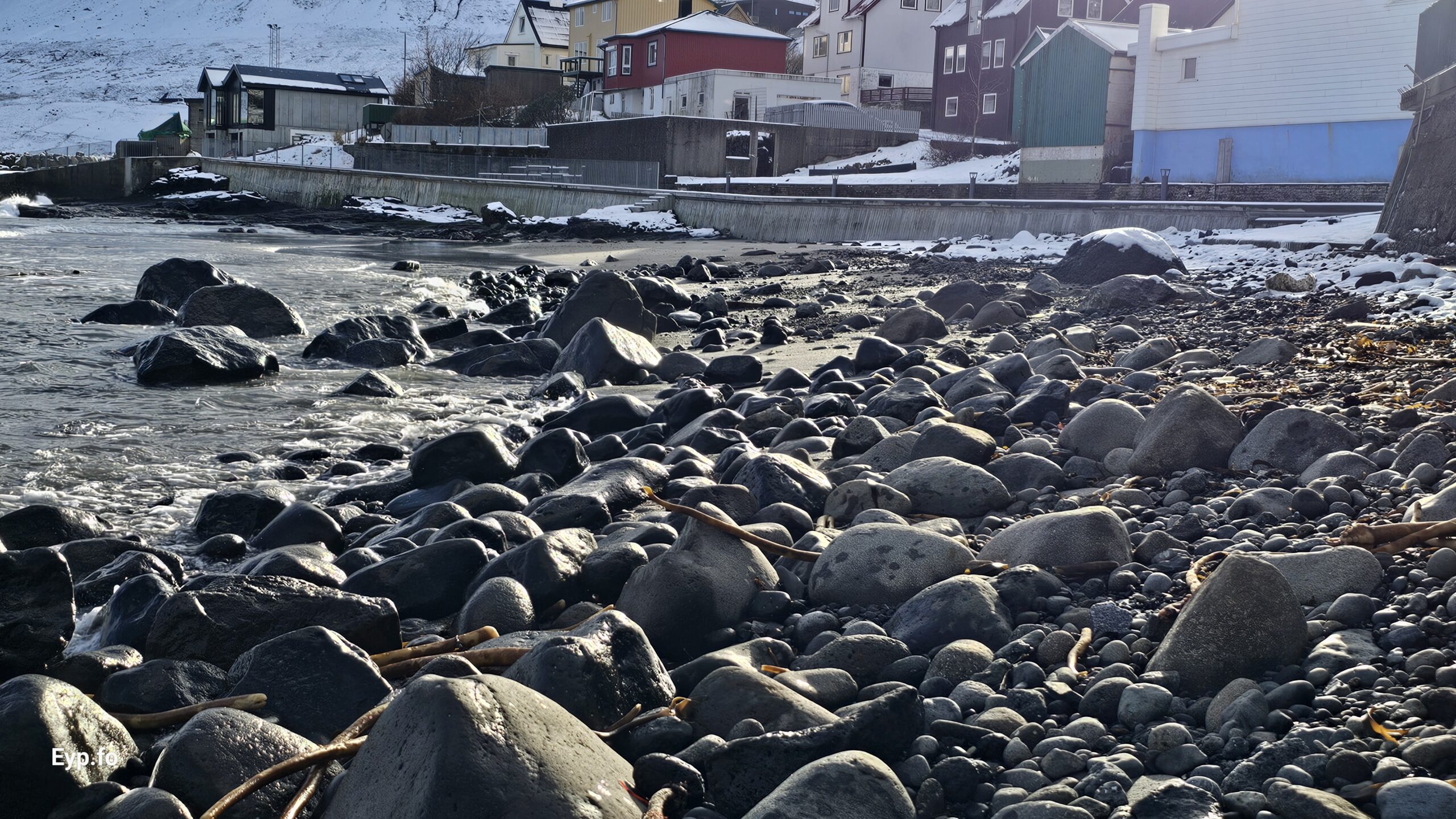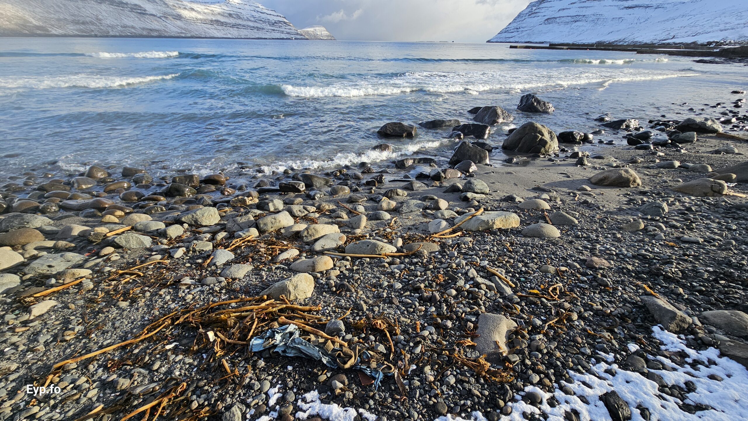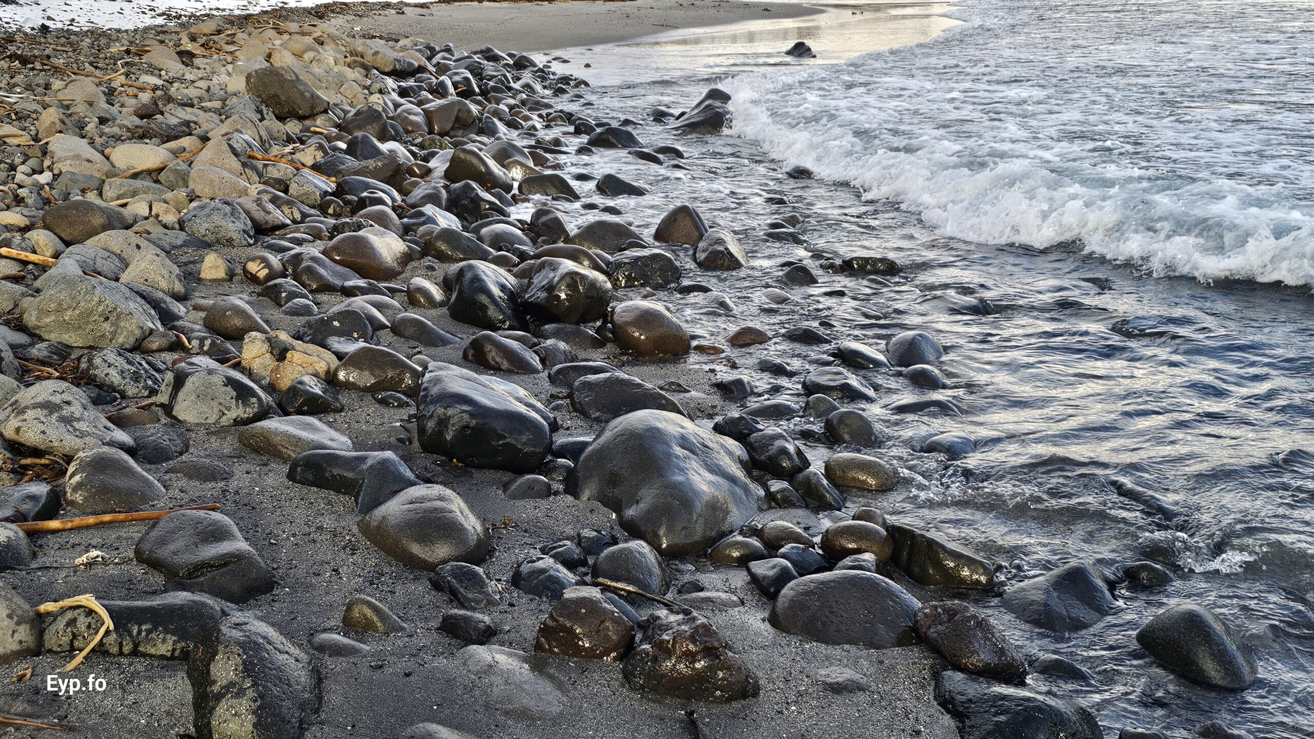 Fjalt grót komið undan kavi eftir nógv brim (myndir)