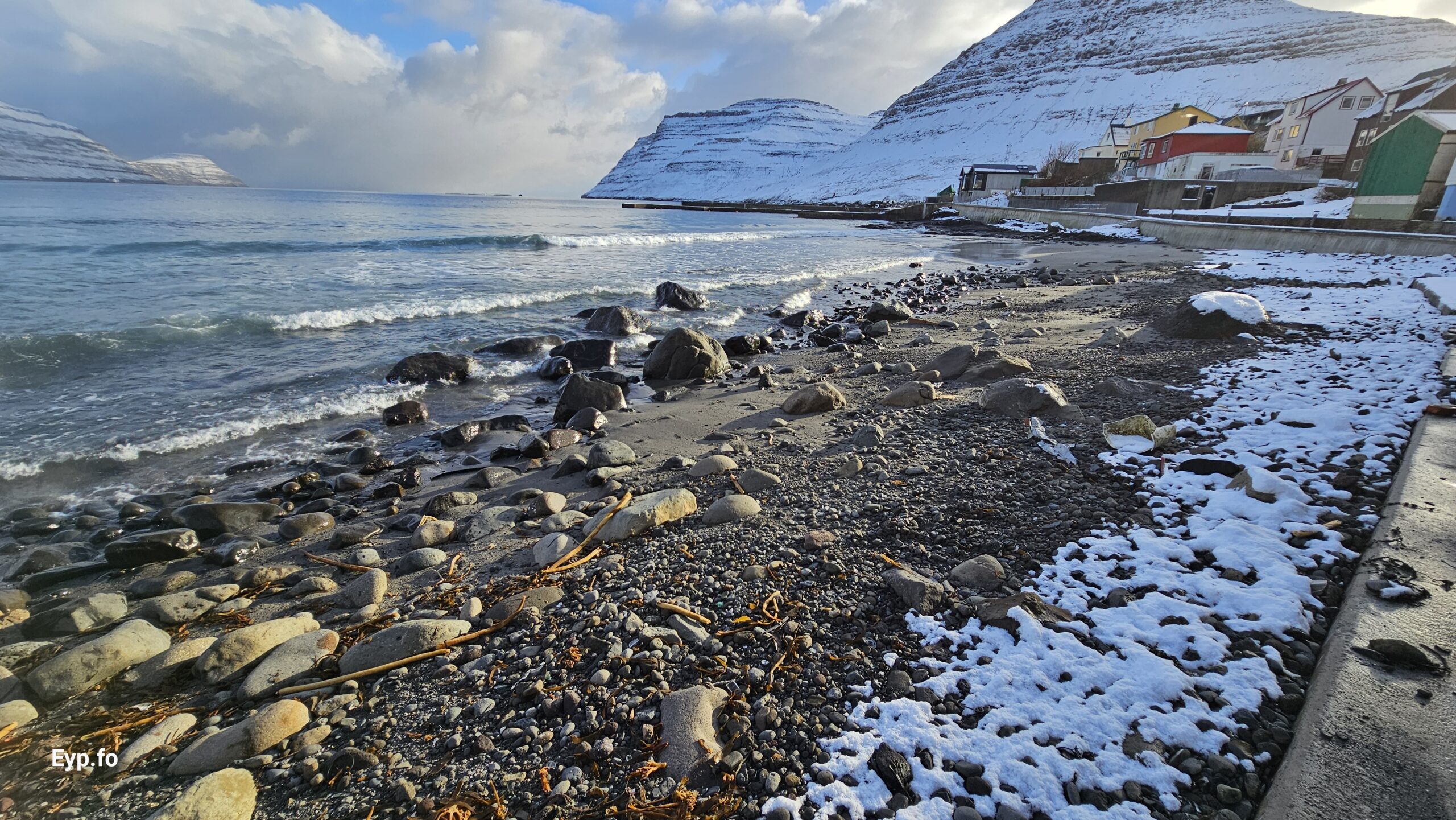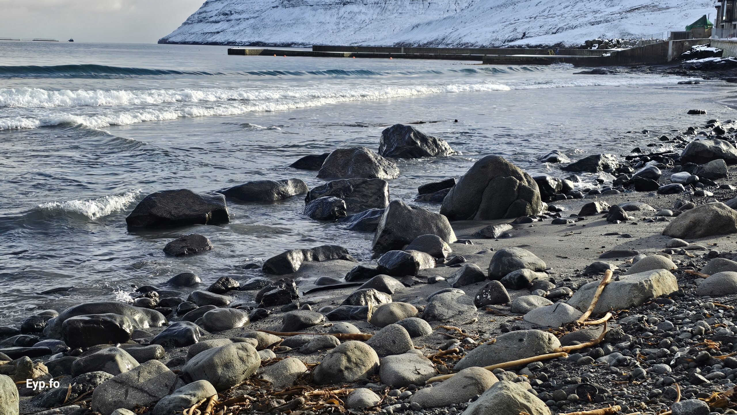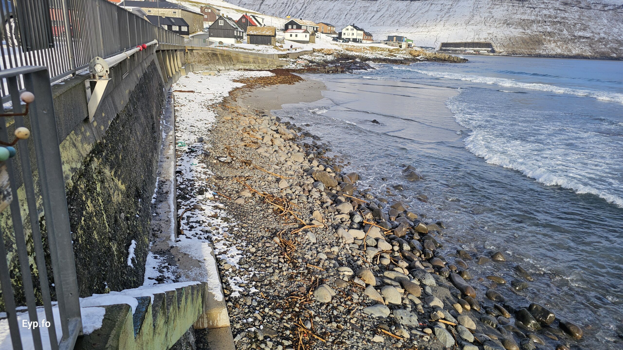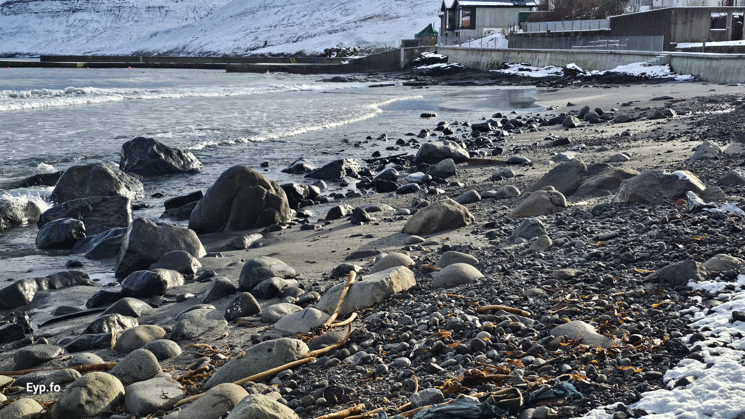 Fjalt grót komið undan kavi eftir nógv brim (myndir)
