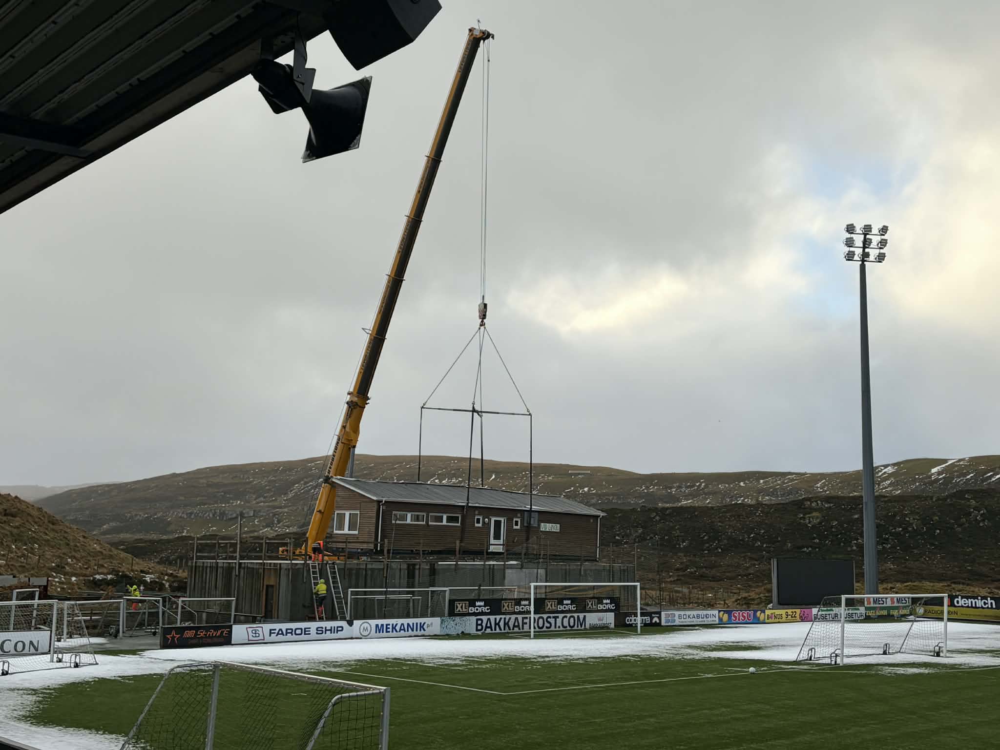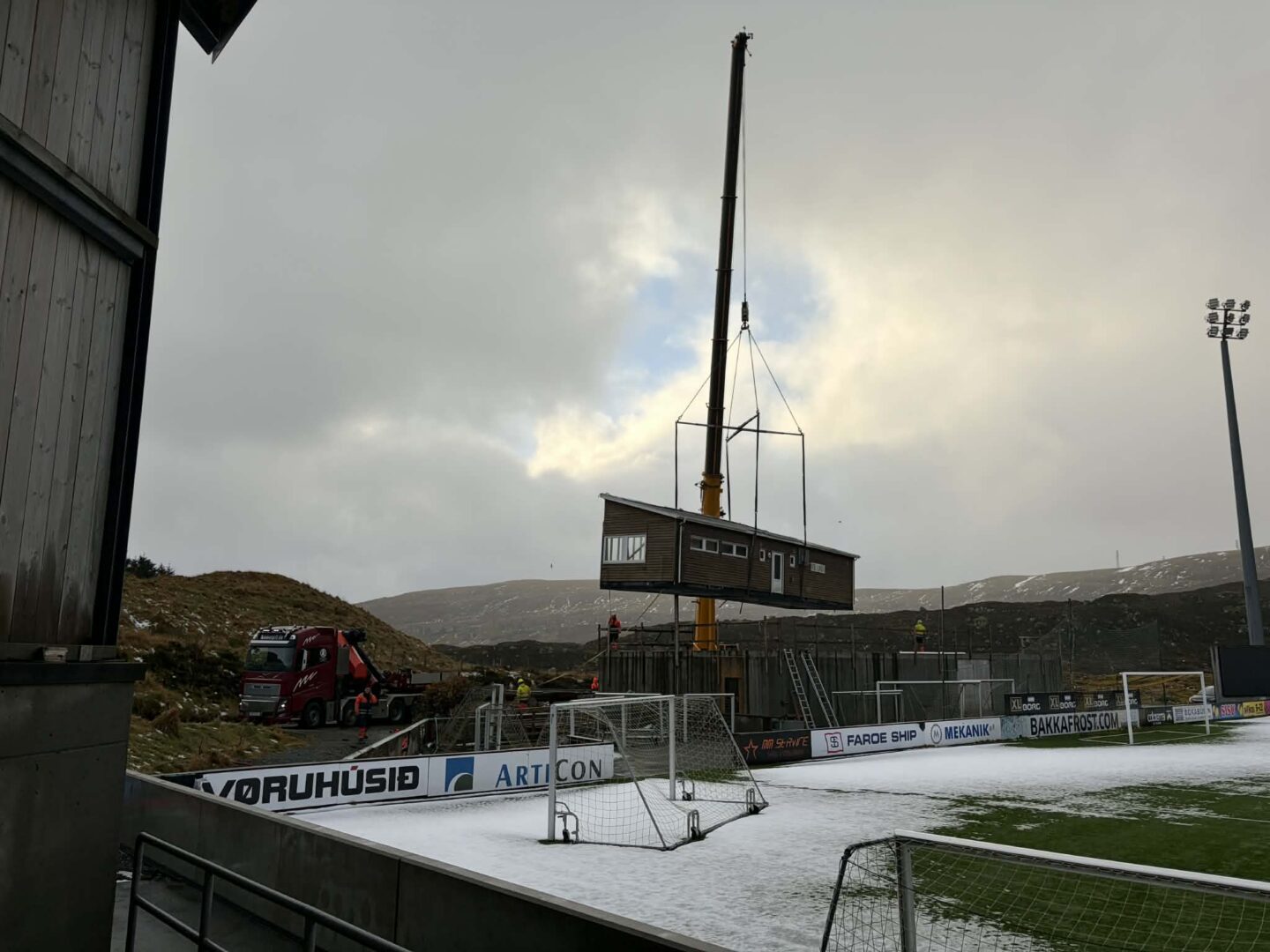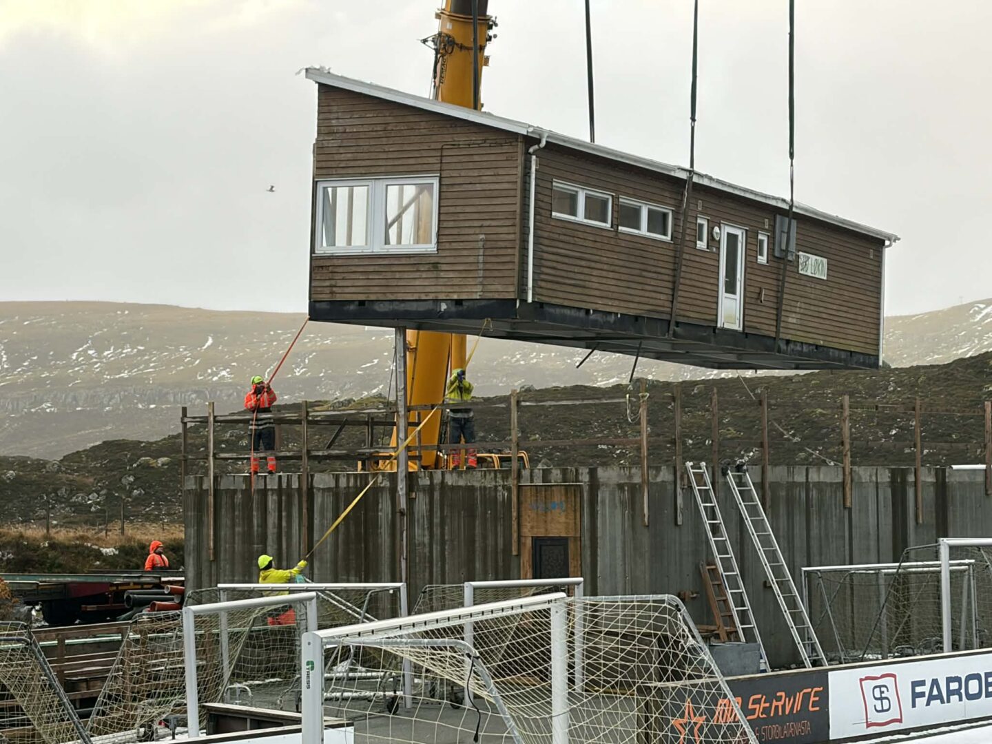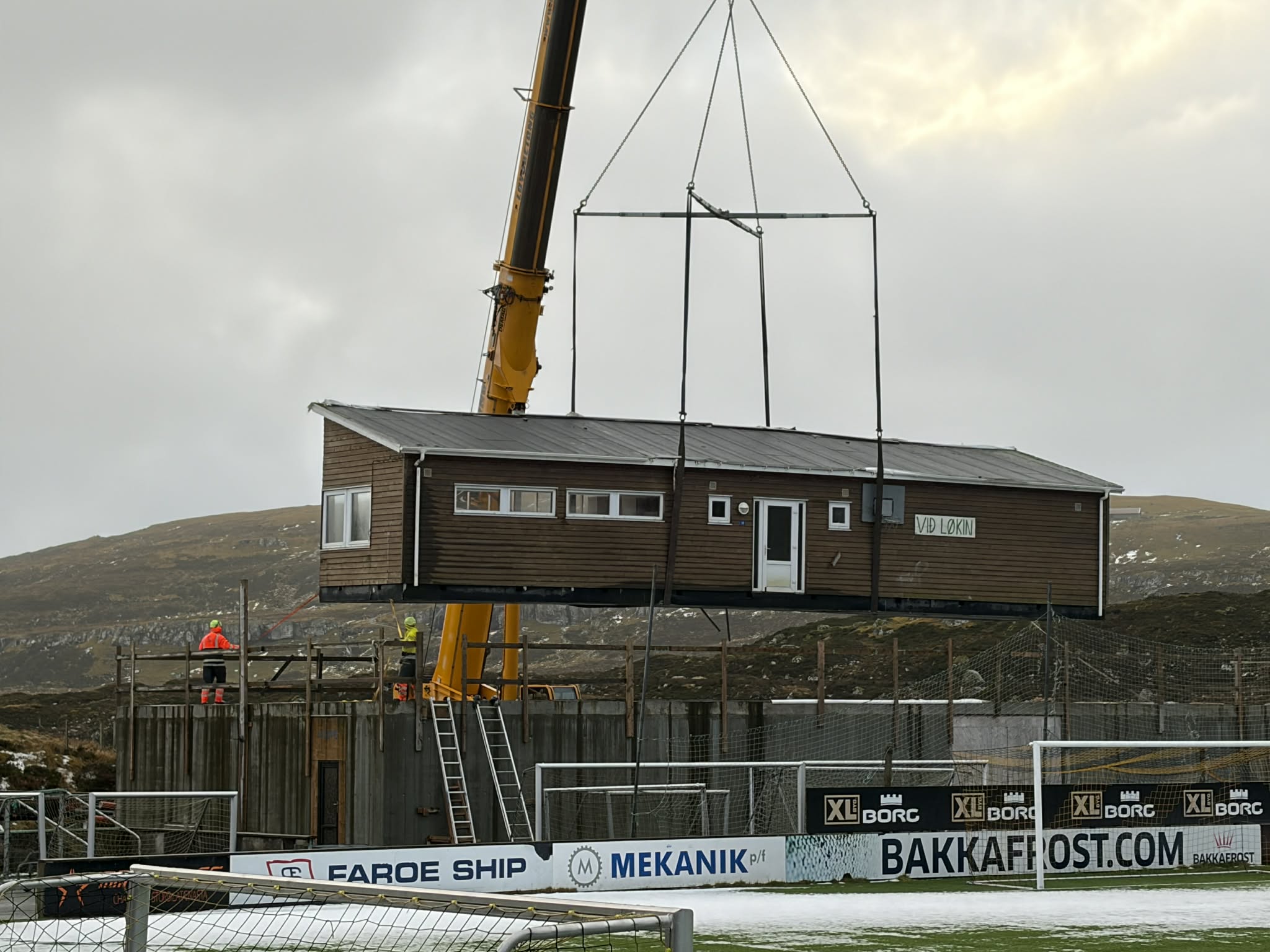 Arbeiðið við at stoypa ein sokkul inni í sjálvum skúlagarðinum á Glyvrum, til at seta húsið omaná, er nú liðugt. Og verður húsið flutt frá við Løkin inn á Glyvrar í kvøld.