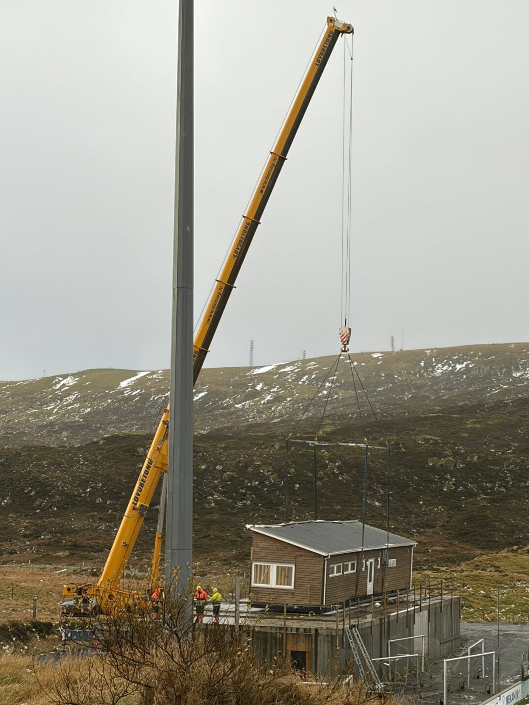 Í dag fóru arbeiðsfólk í gongd við at taka Setrið, eisini kallað Nóas ørk, niður frá stadion-økinum við Løkin í Runavík, har tað hevur staðið í nøkur ár.