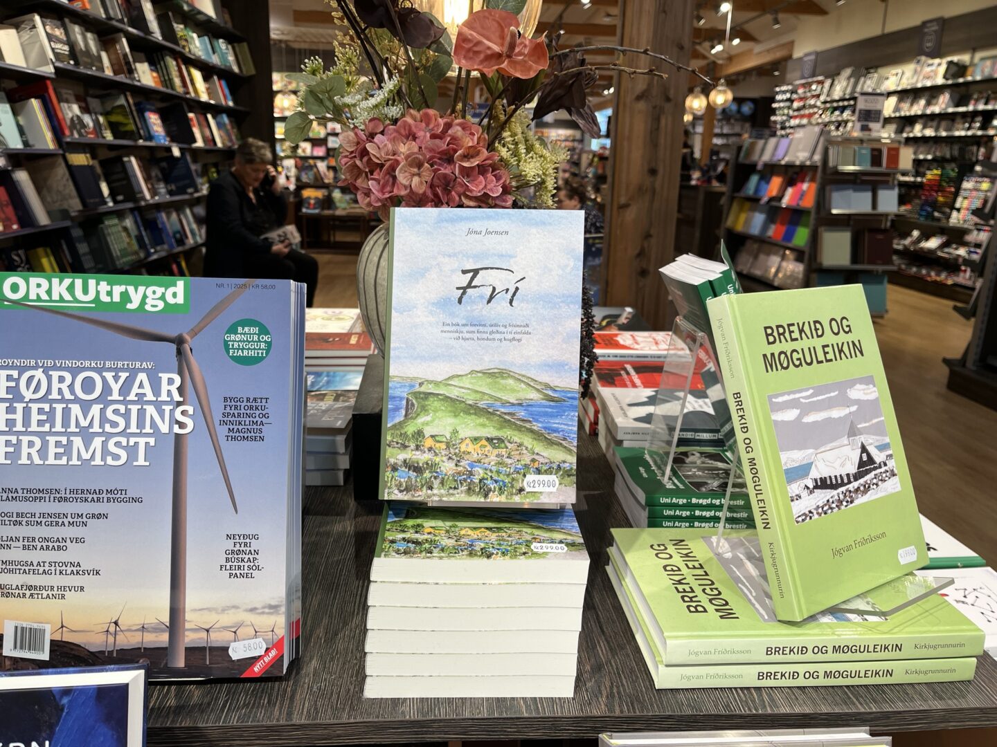 Hósdagin 30. oktober klokkan 16:30, leggur Jóna Joensen nýggju bók sína, FRÍ, fram í HNJ bókahandli. Til framløguna koma Janus Kampmann og Guðrun Sólja Jacobsen at spæla nøkur løg.