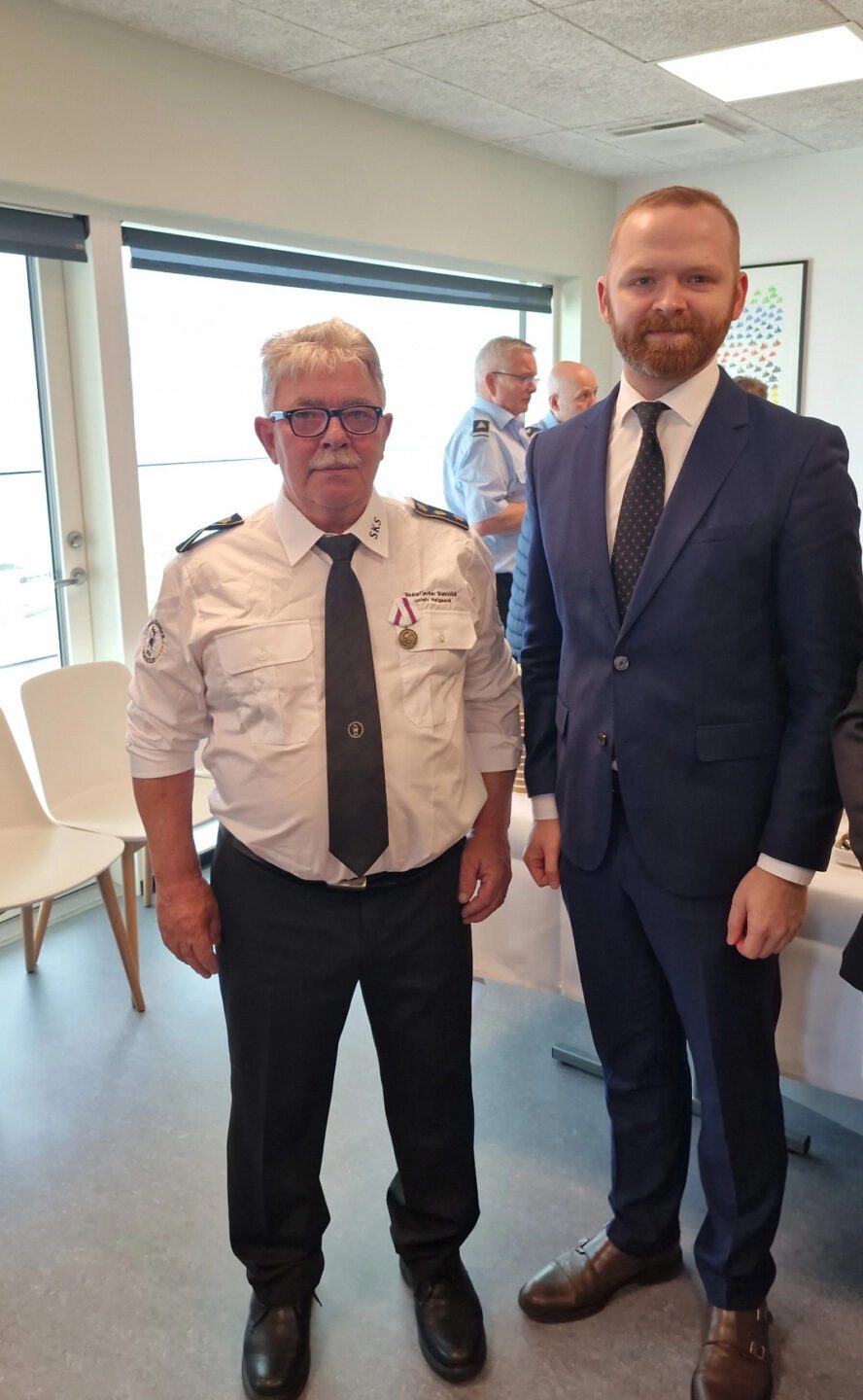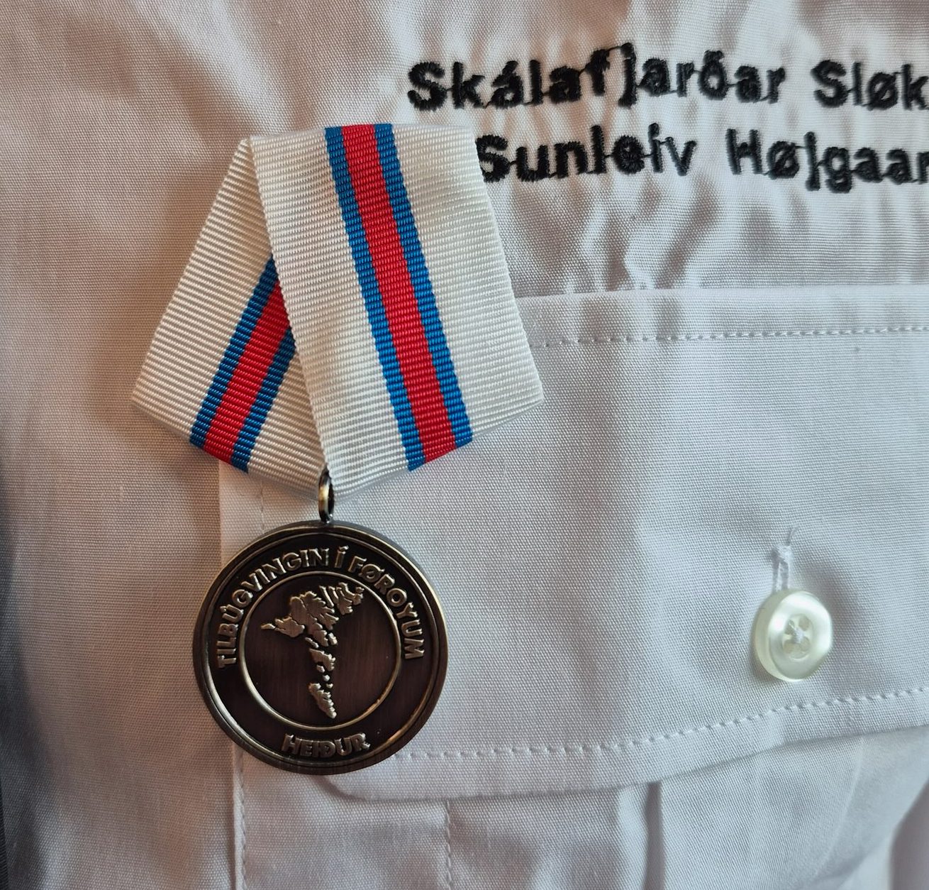 25. august 2025 sendi eg sum landsstýrismaður í tilbúgvingarmálum út eitt rundskriv um heiðurstekin fyri tænastu í tilbúgvingini. Tað er ein sjálvfylgja, at vit í Føroyum skulu heiðra okkara egnu við egnum heiðursmerkjum, tí sum Hargaskaldið yrkti – vit eru føroyingar, serstøk tjóð. Fríggjadagin 24. oktober 2025 hevði eg tann heiður, at lata fyrsta merkið fyri drúgva tænastu inna føroysku tilbúgvingina til Sunleiv Højgaard. Hetta varð ein kensuborin løta fyri mong, ið vóru til staðar í dag.