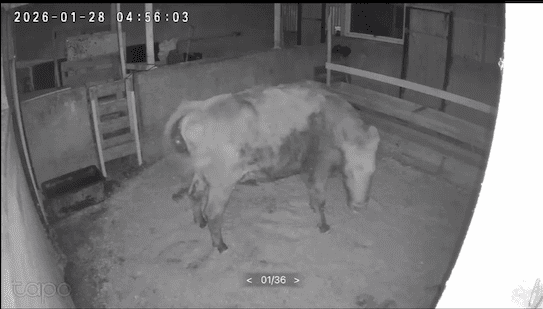 Heima við hús hjá teimum á Eiði, umvegis vakmyndatól í seyðahúsinum, hava tey kunnað fylgt við, og sóu tey í nátt, at nú var stundin komin, tí ein ávísur óró var komin á kúnna.