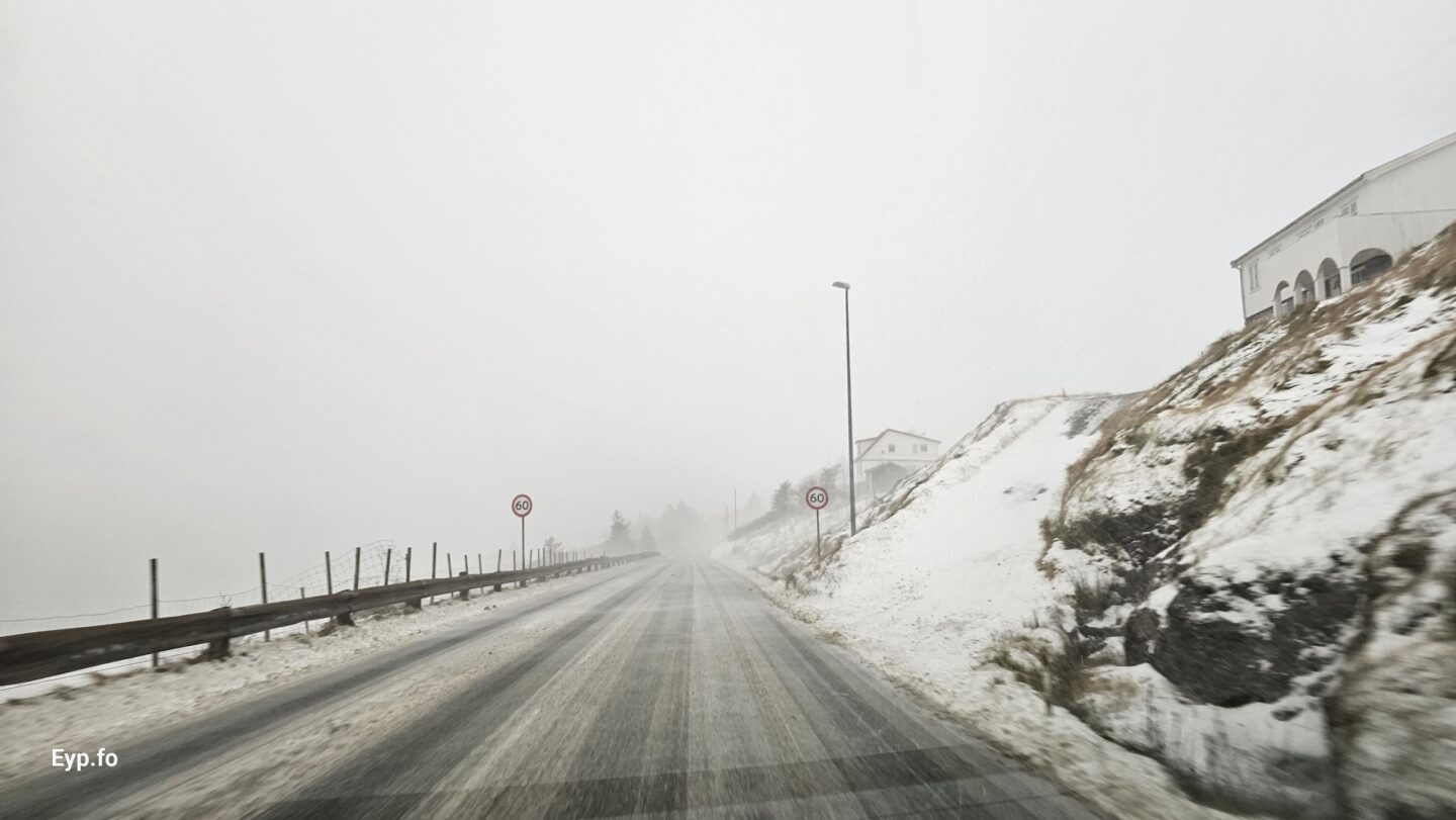 Og Føroya politi ávarar í løtuni um, at tað eru fleiri bilar fastir í kavanum í bæði bygdum og óbygdum øki. Bilar, ið standa fastir eru til stóran ampa fyri starvsfólk hjá Landsverk, ið rudda vegirnar. Heitt verður á førarar at vísa størsta varsemi og umhugsni og boða frá um tey fara frá bilinum.