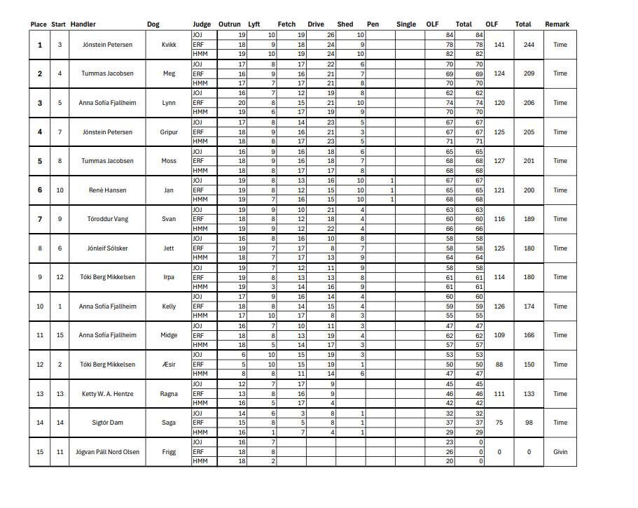 Viðheft er ein mynd av úrslitinum leygardagin