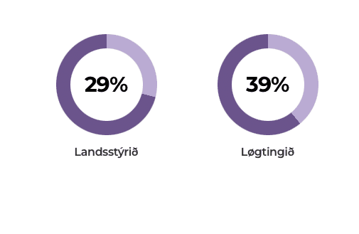 Hóast allir flokkar hava væl skikkaðar kvinnur til landsstýrissessirnar er kynsbýtið tvær kvinnur og fimm menn*. Ella 29% kvinnur og 71% menn. Hetta er ein stór afturgongd í mun til verandi landsstýri, ið er 50/50.