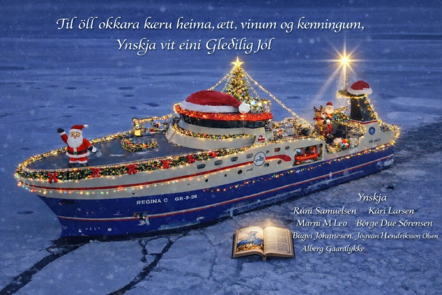Til øll okkara kæru heima, ætt, vinum, kenningum og avloysarum, ynskja vit eini Gledilig Jól og eitt av harranum eydnuberandi og vælsignad nýggjár, vid tøkk fyri tad brátt farna.
