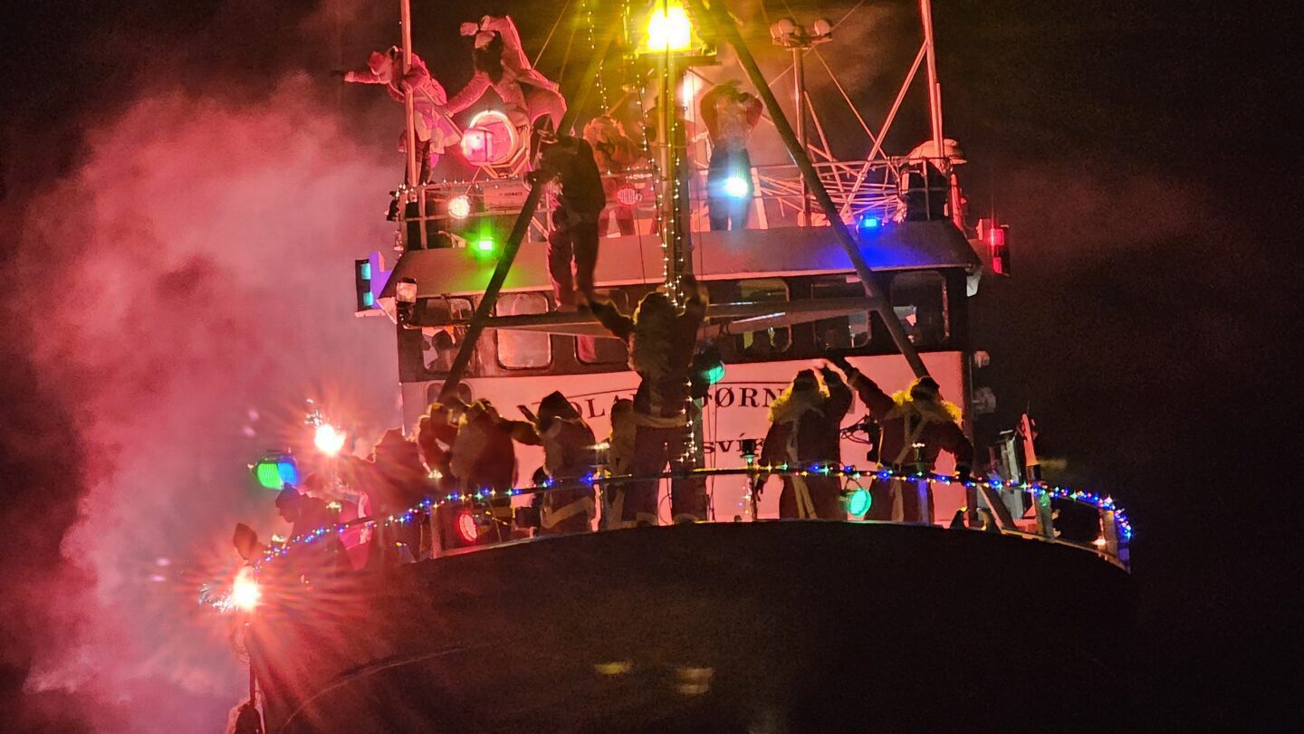 Børn og vaksin eru vælkomin oman á bryggjuna at heilsa uppá jólamennirnar, ið eisini bjóða pakkar til børnini.