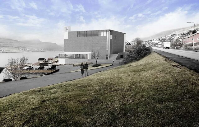 Tá ein kirkja er bygd, stendur hon har, hon til ævigar tíðir er reist. Tað er líkasum ein gongd, ið vit venja okkum við og lata okkum lynda, at hon er har, sum teknarar, myndugleikar og pengaveitarar hava samtykt og játtað. Í hesum ofta drúgva tíðarskeiði venja vit okkum við nýggja sýnið í landslagnum og samanhangskraftina við teir bygningar, sum longu eru har, og nýbygda kirkjan leggur seg upp at í bygda- ella býarrúminum.
