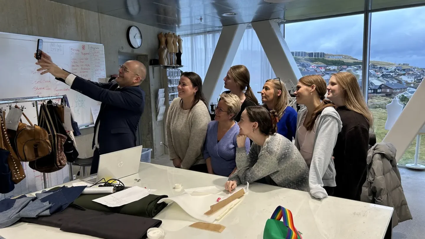 Landsstýrismaðurin nýtti eisini høvi at heilsa upp á næmingar og starvsfólk á klædnaatstøðiútbúgvingini, sum var so nógv umrøtt herfyri. Landsstýrismaðurin er glaður fyri, at ferð nú fer at verða sett á arbeiðið at endurskoða útbúgvingarnar innan klædnaatstøði og tilvirkisatstøði, soleiðis at hesar kunnu blíva heilar yrkisútbúgvingar. Tað er hugtakandi at síggja allan kreativitetin, sum er á einum slíkum staði.