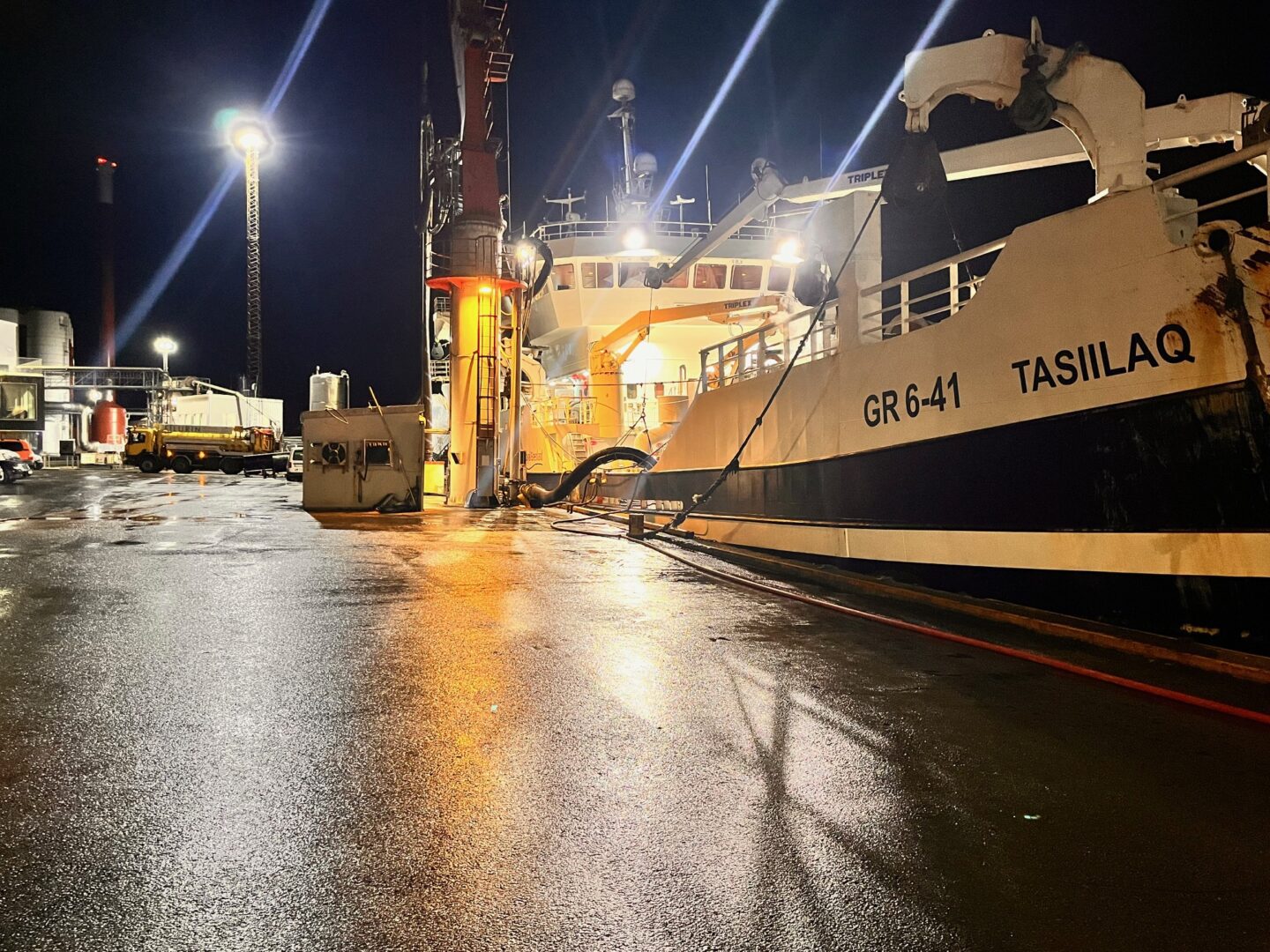 Í kvøld kl. gott 19.50 fekk sløkkiliðið í Fuglafirði boð um, at ein leki var á einum rørið umborð á uppisjóvarskipinum Tasiilaq, sum liggur við bryggju í Fuglafirði.