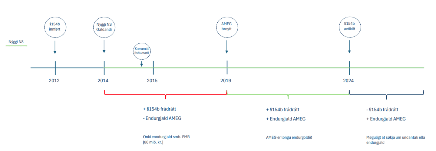 Fyri 2024 og frameftir verður ongin §154b frádráttur givin, men hesi kunnu framvegis fáa undantak ella endurgjald fyri AMEG, um tey rinda sosial gjøld í øðrum Norðurlandi.