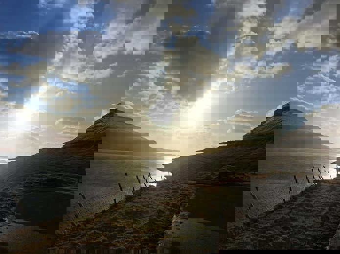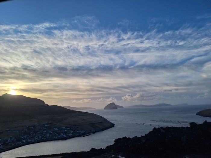 Fyrstu vikuna í mars gingu lágtrýstini beint á okkum. Ofta grátt og vátt, men ímillum lágtrýstini stungu hátrýstryggir seg norðureftir við eitt sindur hugaligari skýlofti. Soleiðis var um morgunin 3. mars. Tað var frískur vindur av útnyrðingi, og tað garðaði á sjónum á Tangafirði. Í erva var smáskýggjað við sól ella sólglottum. Mynd: Tórhallur Thomsen.