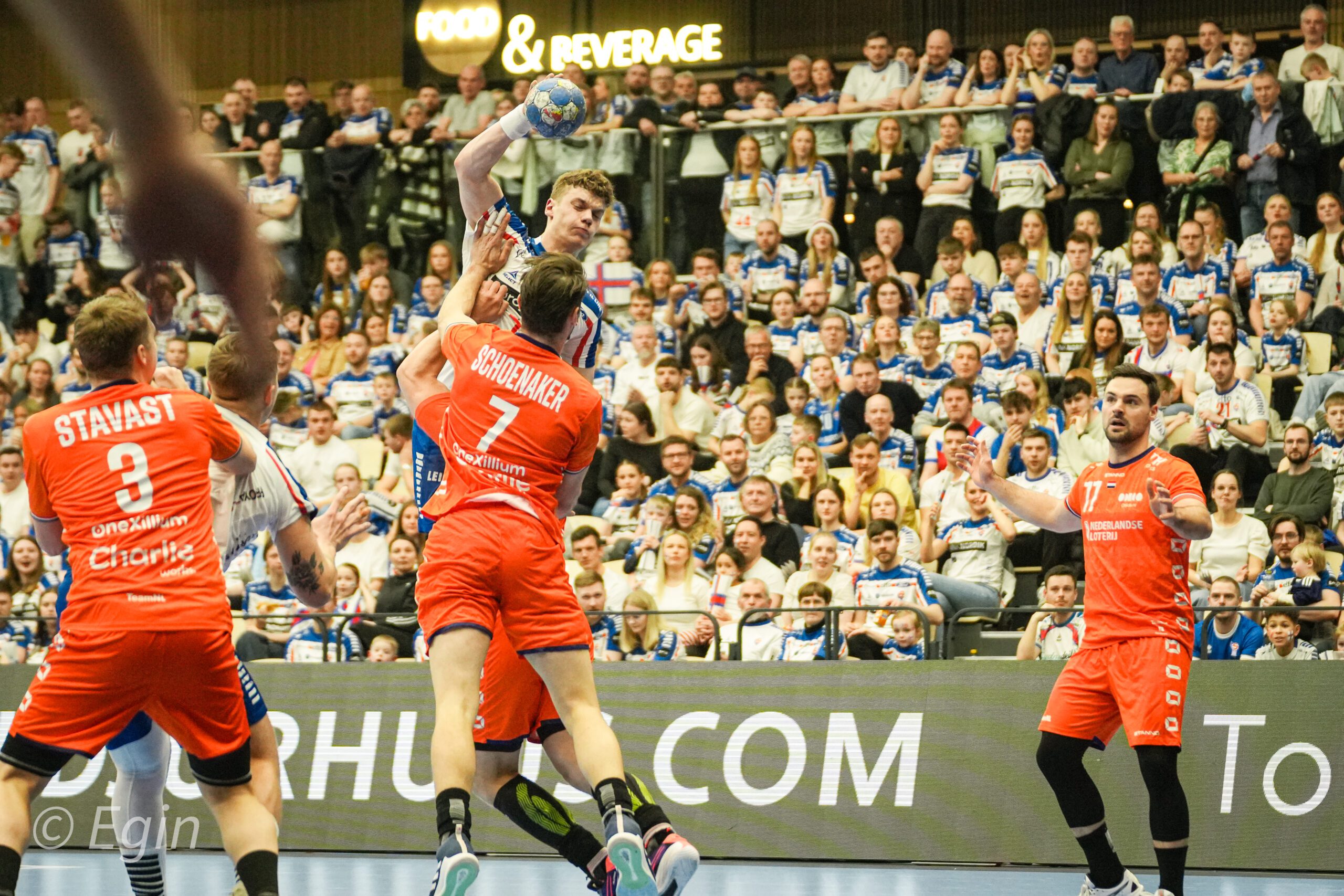 Tá ið tað restaðu bert fá sekund av dystinum, vóru Niðurlond frammanfyri 31-32, men í evstu løtu eydnaðist tað Leivi Mortensen at javna fyri Føroyar og harvið tryggja javnleikin, í einari fullari kókandi stórhøll.