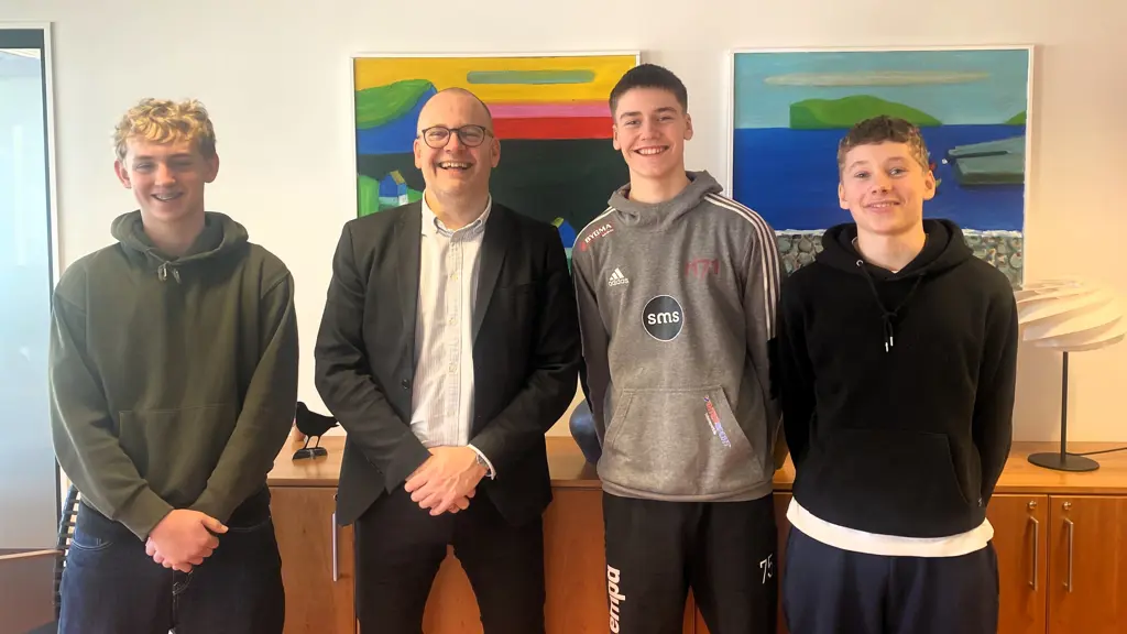 Silas, Boas og Markus úr 9. flokki í Skúlanum við Løgmannabreyt, sum arbeiða við eini verkætlan um týdningin av rørslu í fólkaskúlanum, vitjaðu fríggjadagin og høvdu eitt prát við Djóna Nolsøe Joensen, landsstýrismann, um hetta evni.