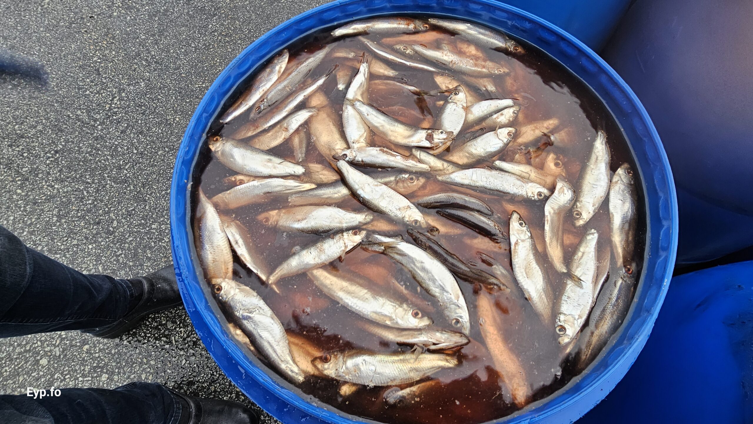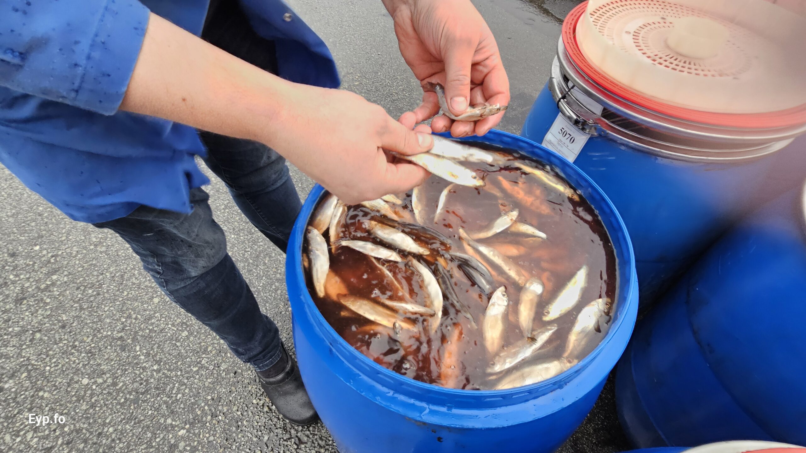 Hann sigur víðari, at hesa vikuna er alt farið í tunnur. Hann sigur at 38 stykkir (fiskar) verða taldir til eitt kg.