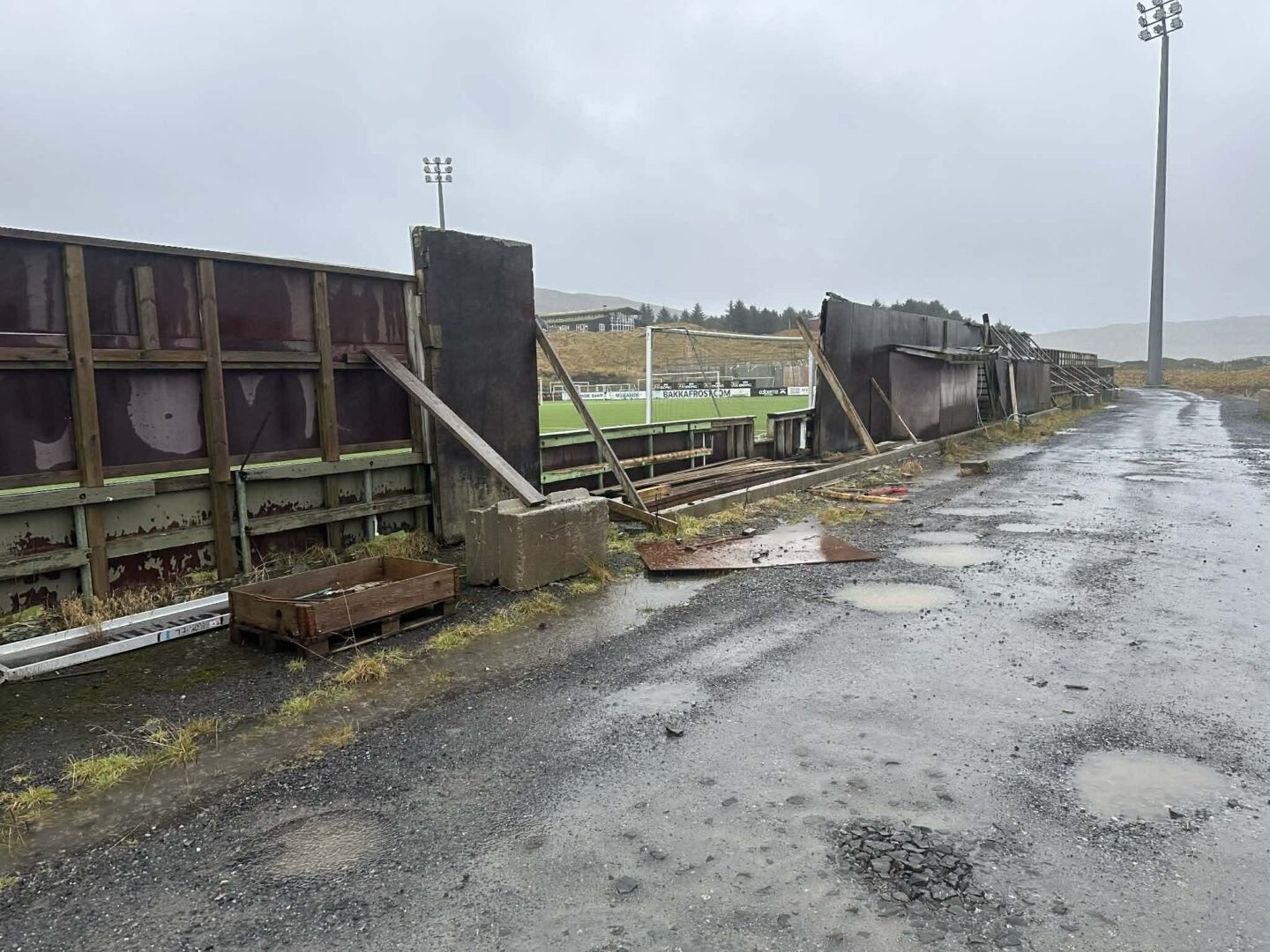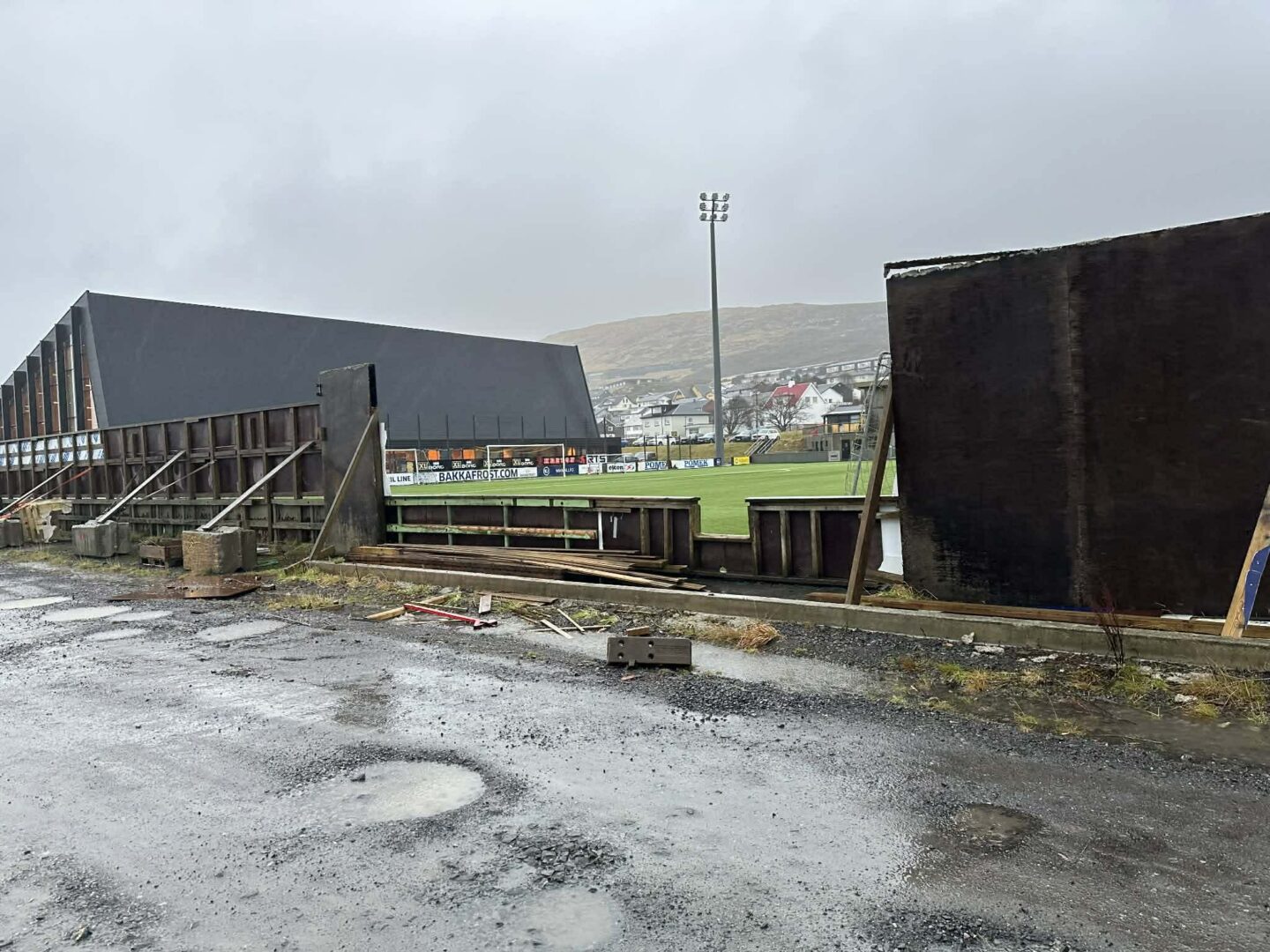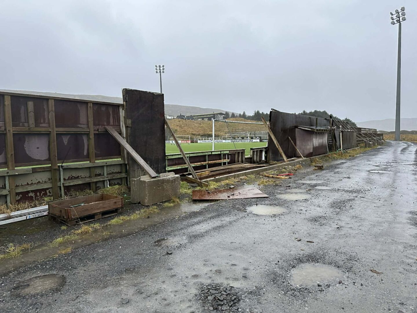 Sum myndirnar vísa, so er allur heimabonkurin við fótbóltsvøllin við Løkin, farin allur sum hann er í nógva vindinum.