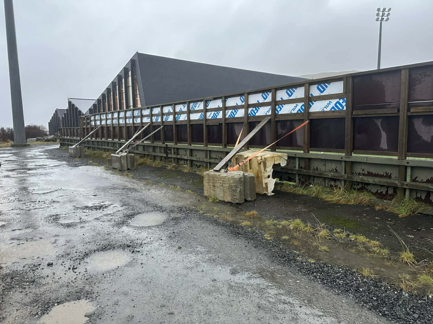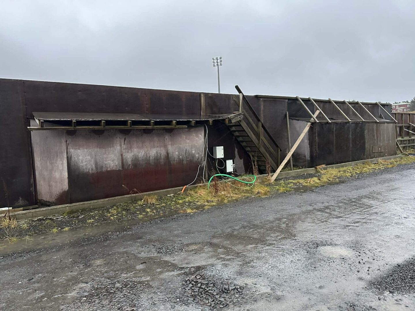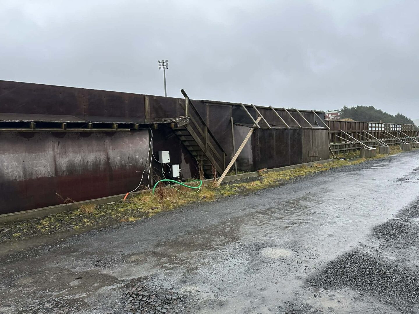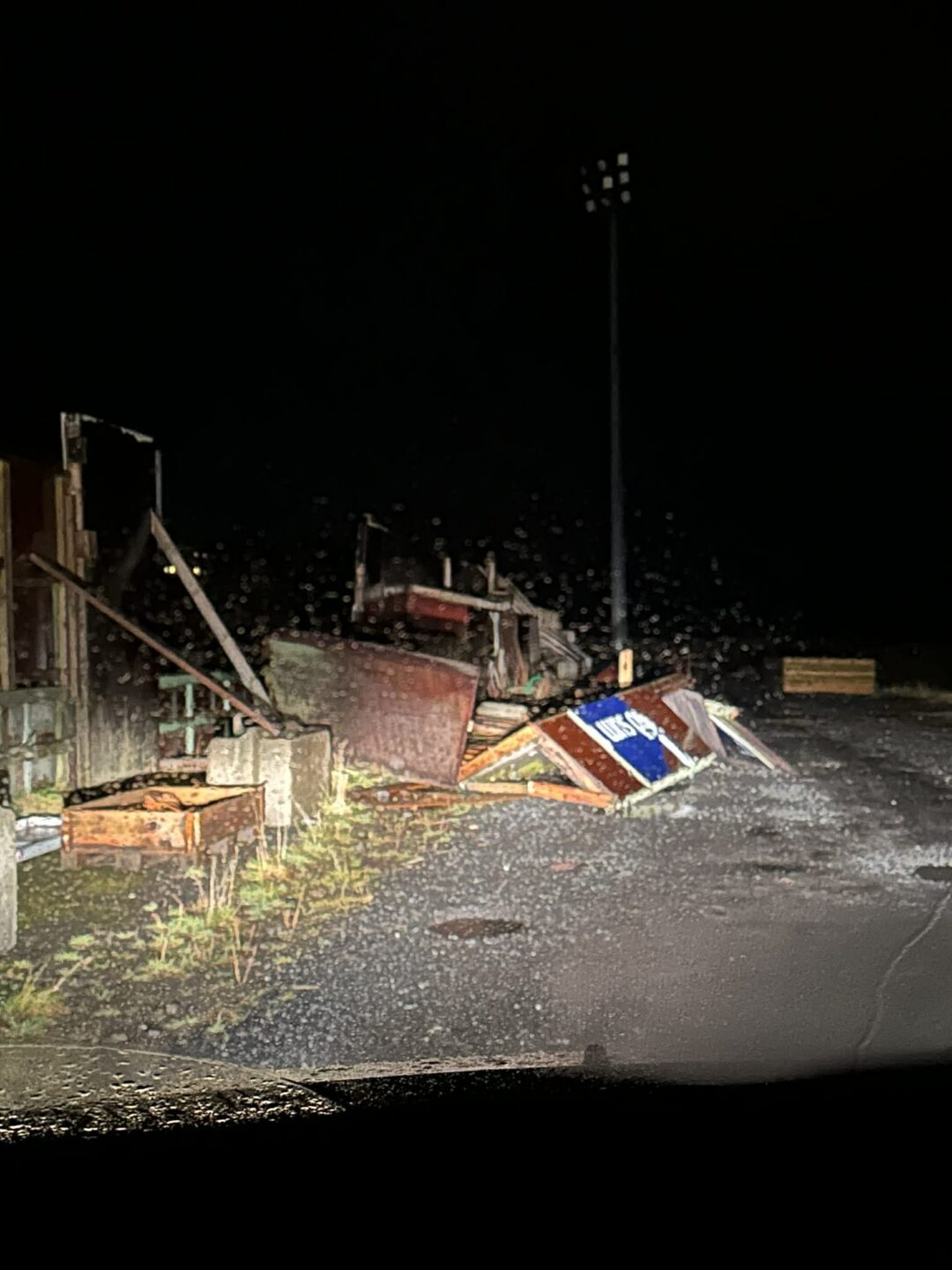Sum myndirnar vísa, so er allur heimabonkurin við fótbóltsvøllin við Løkin, farin allur sum hann er í nógva vindinum.