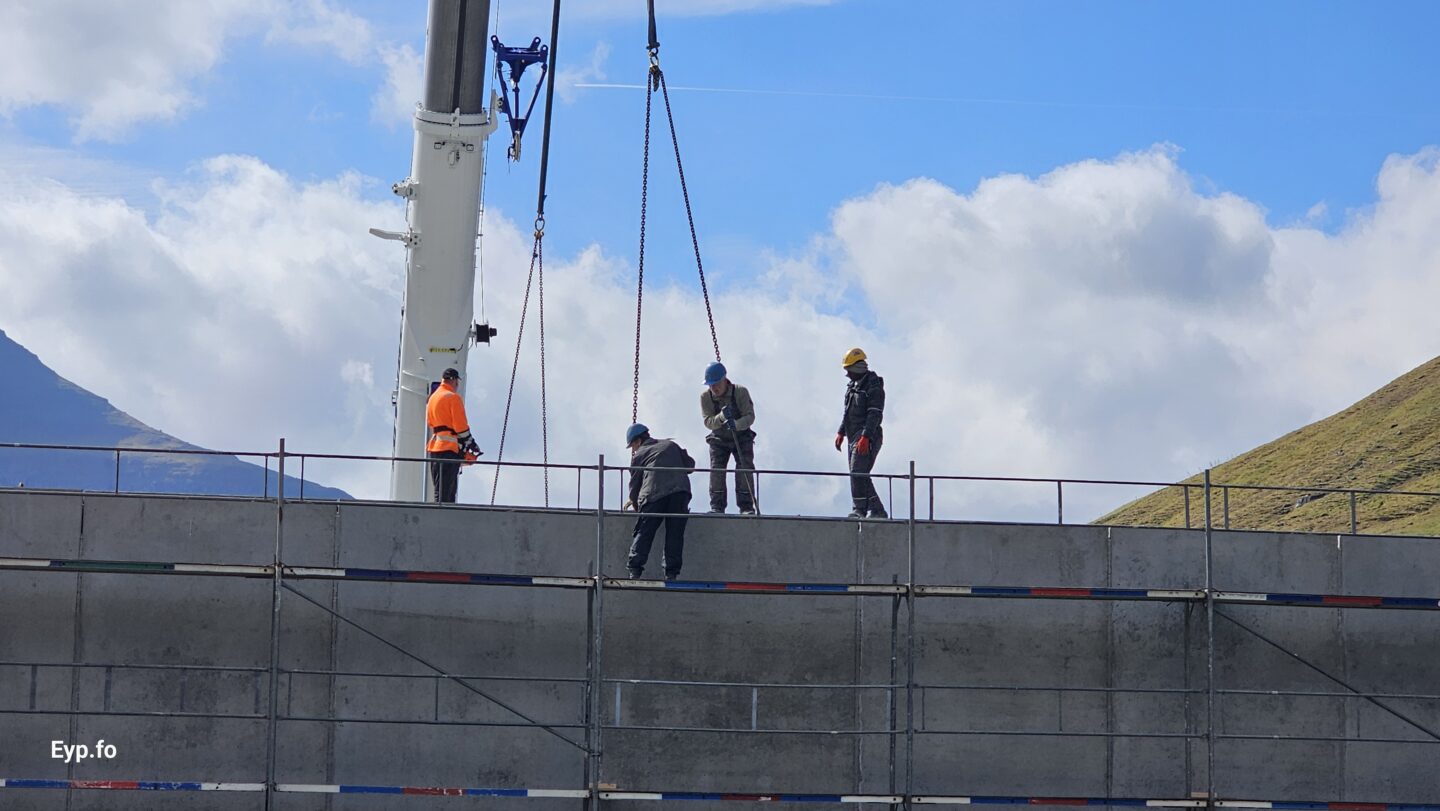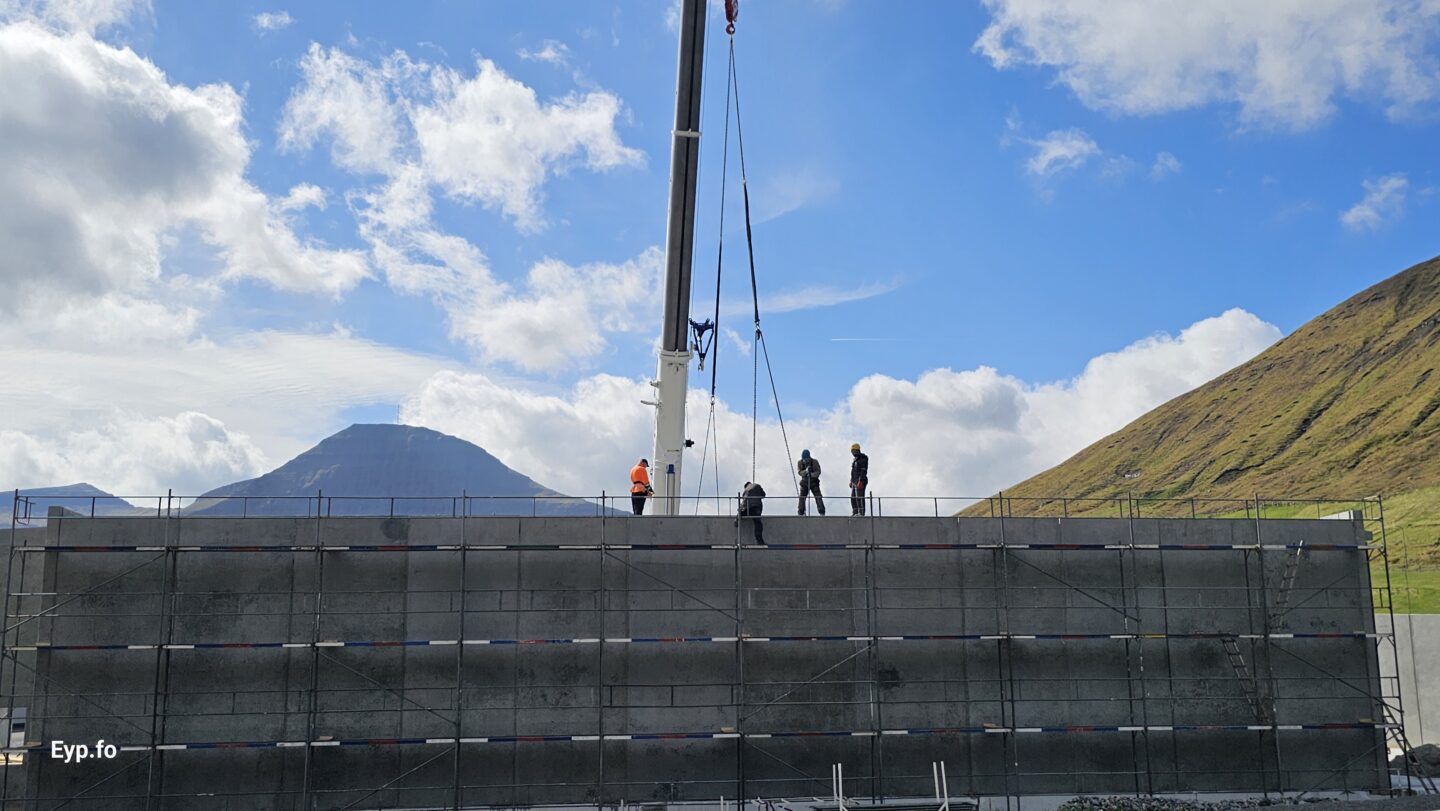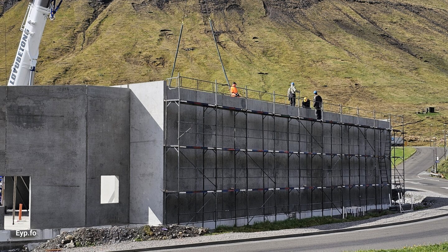 Tað var miðskeiðis í mars í ár, at fyrstu betongveggirnir vóru settir upp.