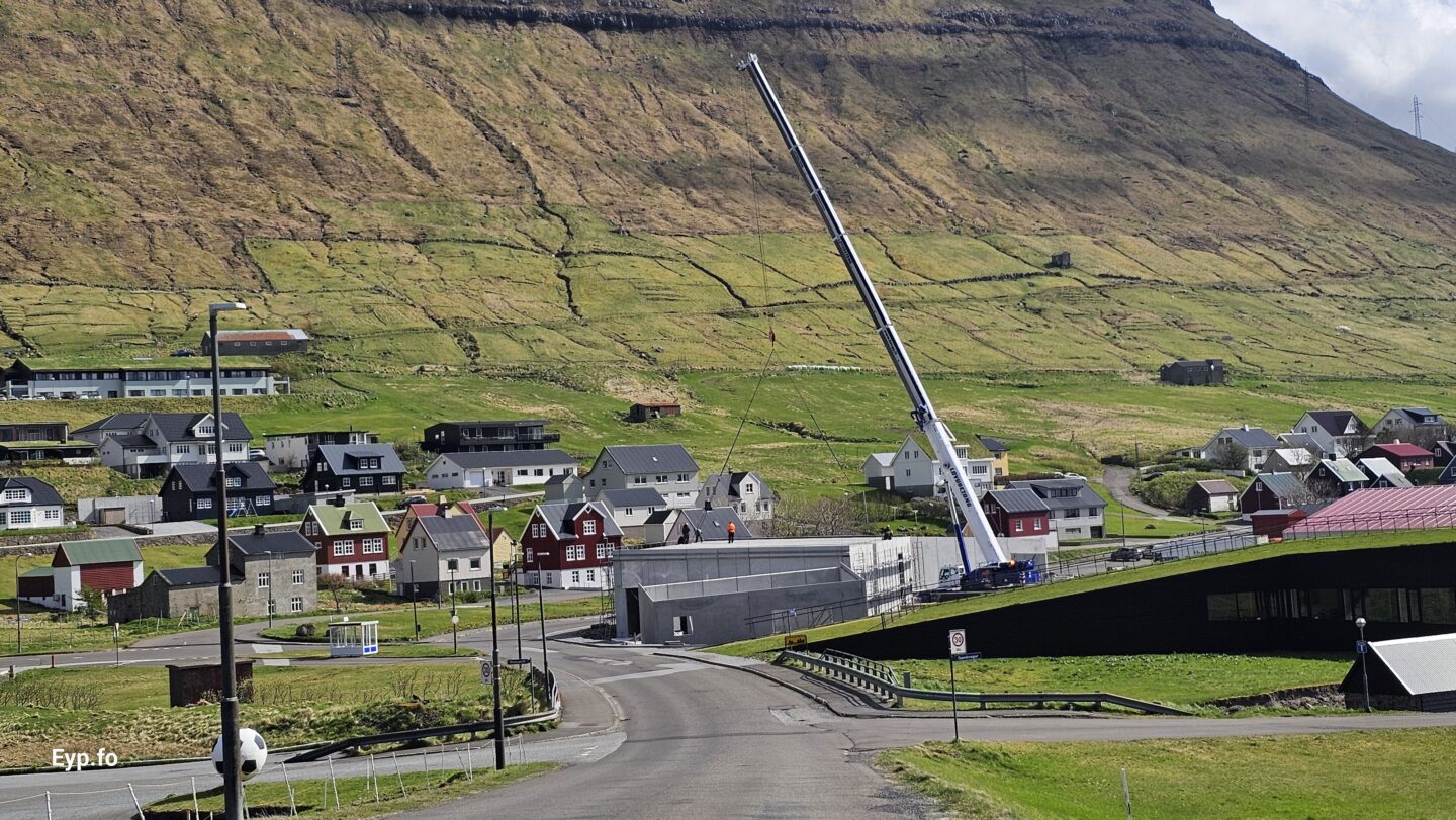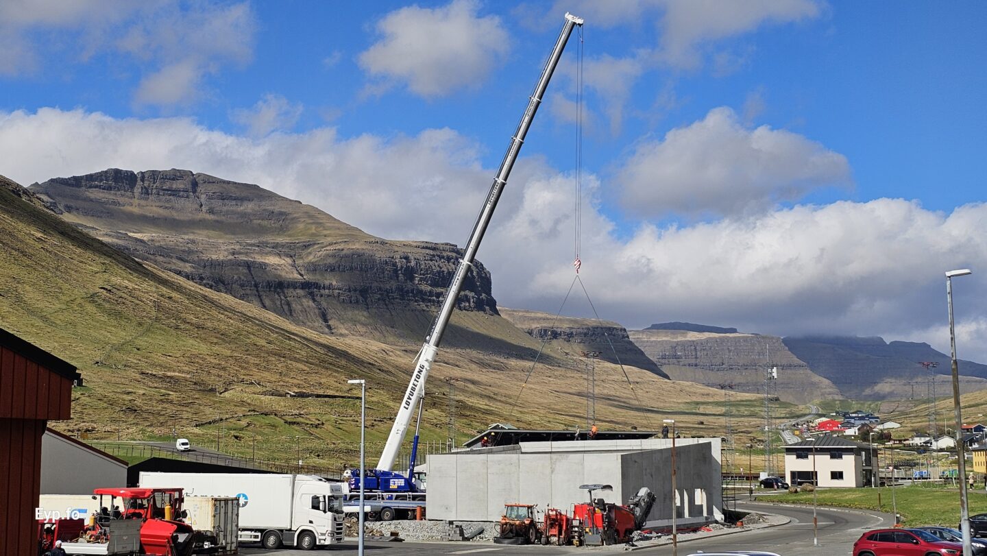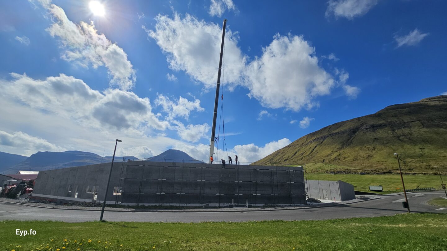 Tað var miðskeiðis í mars í ár, at fyrstu betongveggirnir vóru settir upp.