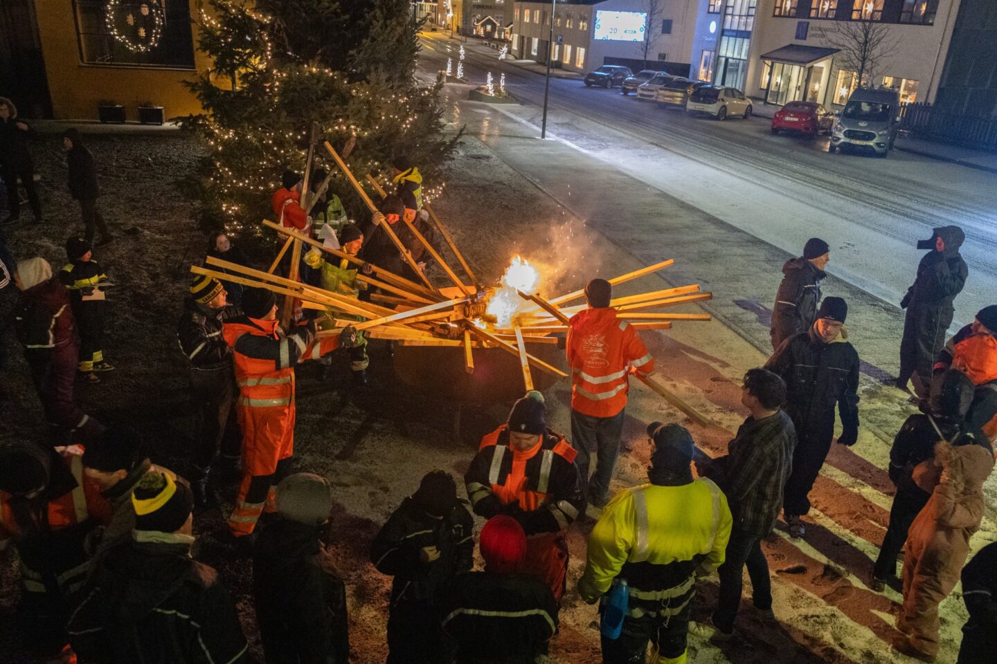 Í gjár, gamlaárskvøld, varð kyndlagongd í Runavík, meðan Tórbjørn Jacobsen, borgarstjóri í Runavíkar kommunu, helt nýggjársrøðuna inni í Gulu smiðju.