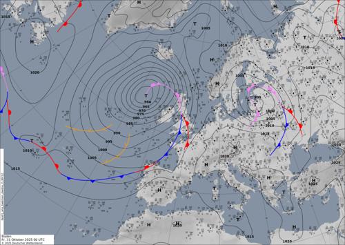 Tíbetur var hetta ikki gongdin í oktober, men heldur undantakið. Hetta lágtrýstið fór sum frá leið víðari í landsynning inn yvir Danmark, Týskland og Svøríki og hevði við sær fitt av vindi í hesum londunum eisini.