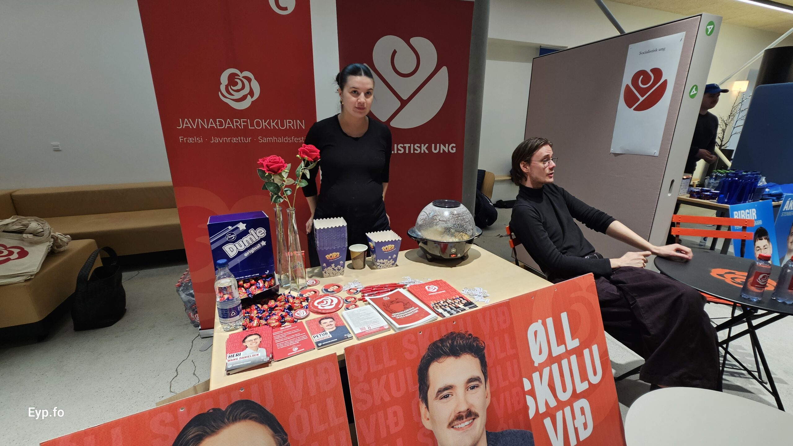 Valfeburin er í hæddini. Politisku ungmannafeløgini vitjaðu fyrrapartin í dag á miðnámsskúlanum á Kambsdali.