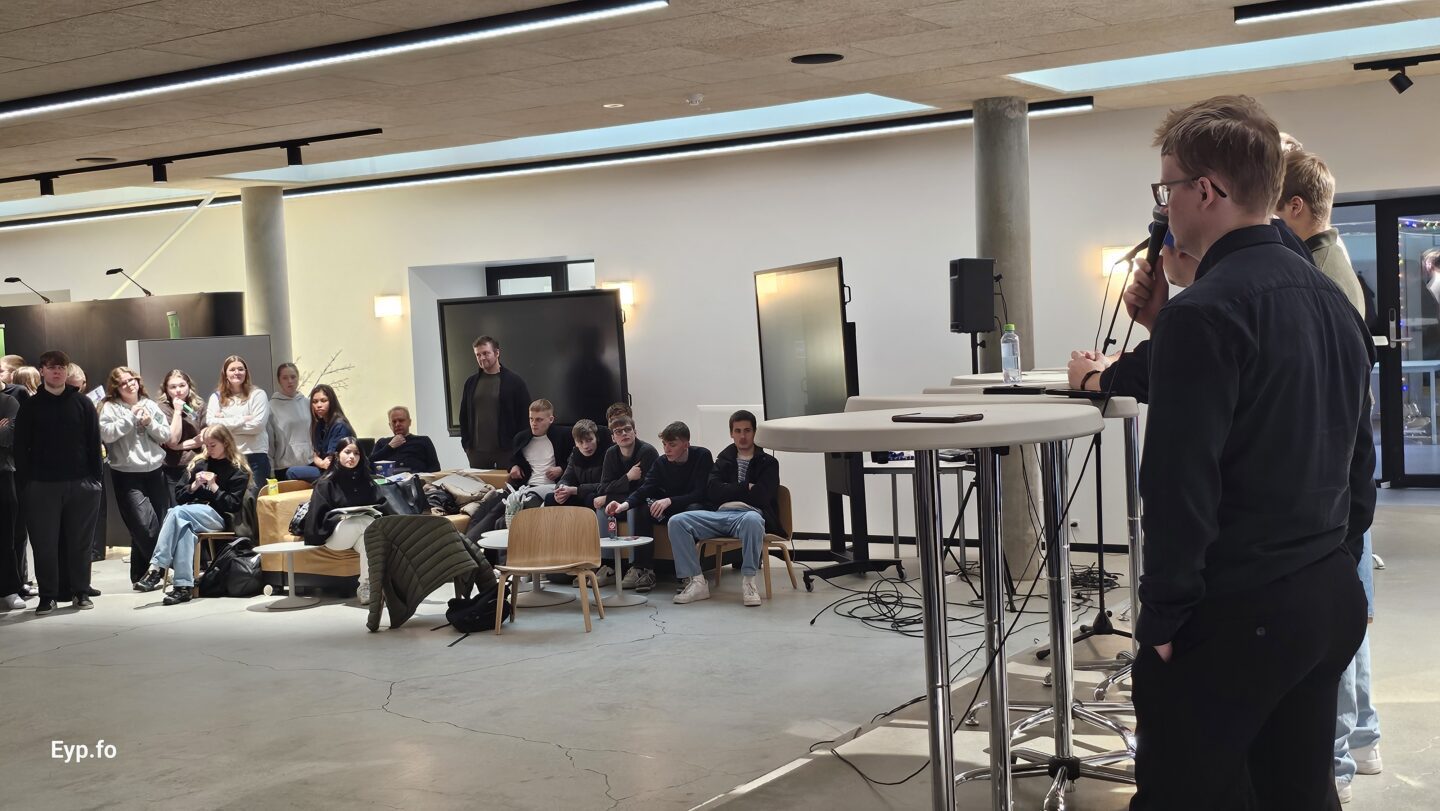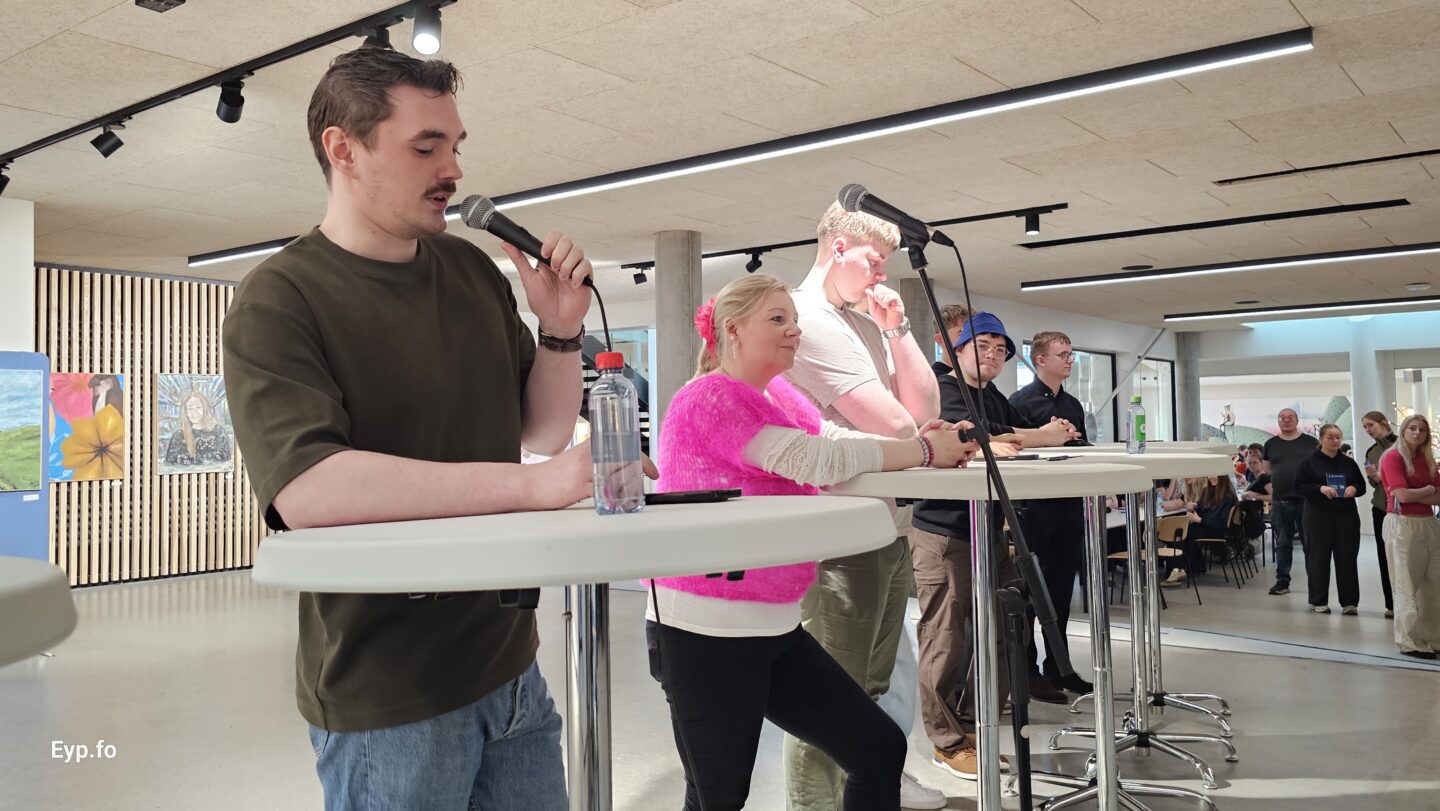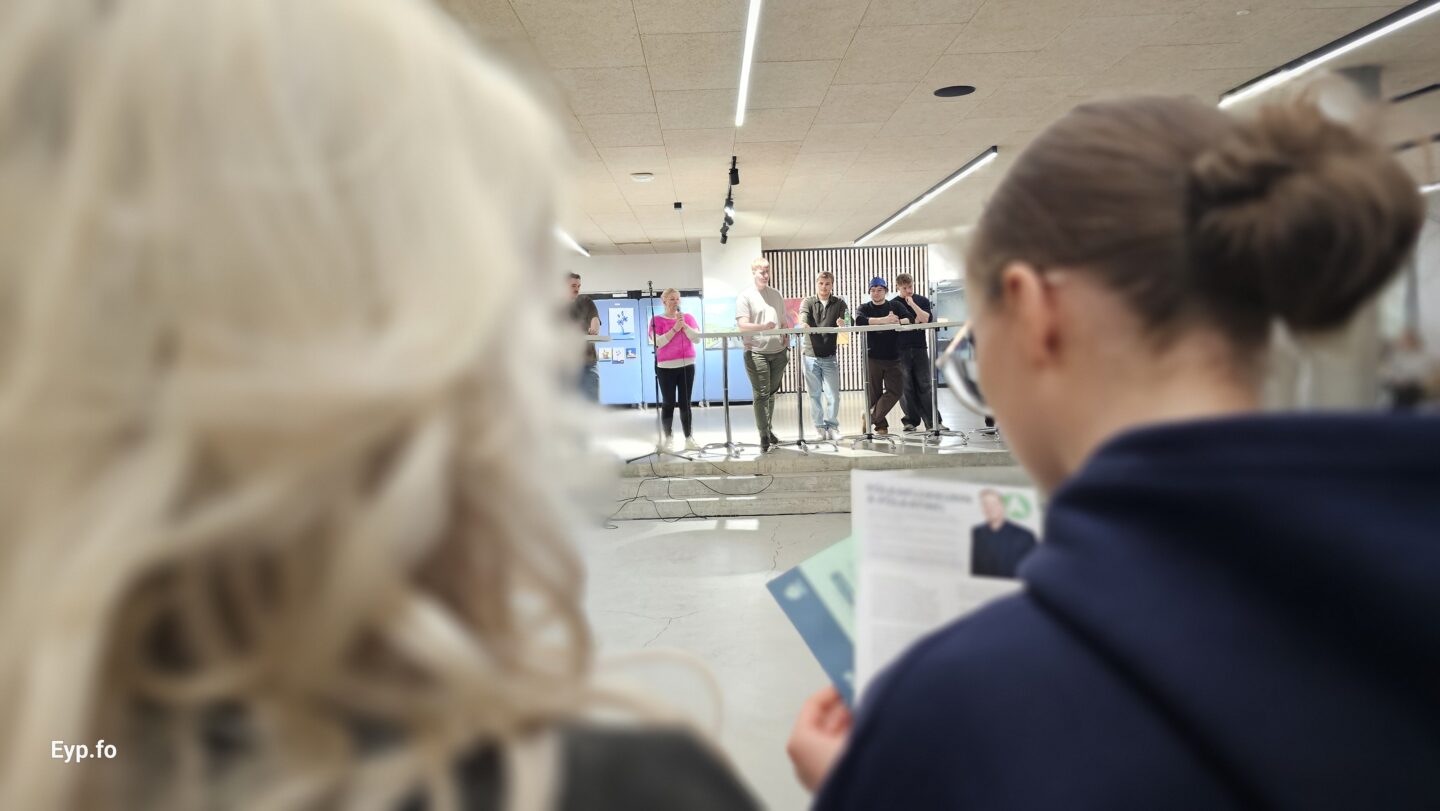 Har høvdu tey høvdu hvør sín bás í nýggju snotuligu miðhøllini, meðan valevnini eisini fingu 2 minuttir hvørt at leggja fram á pallinum frammanfyri øllum næmingunum.