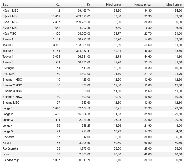 Prísir á Fiskamarknaðinum 12. mars