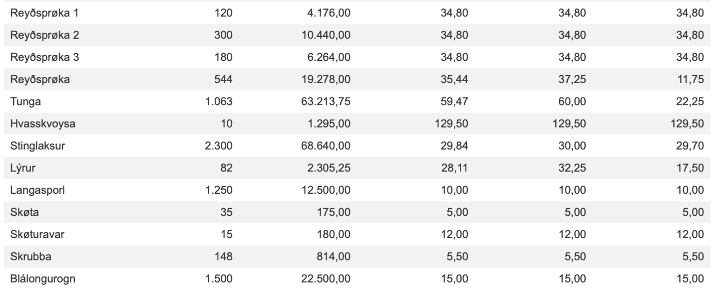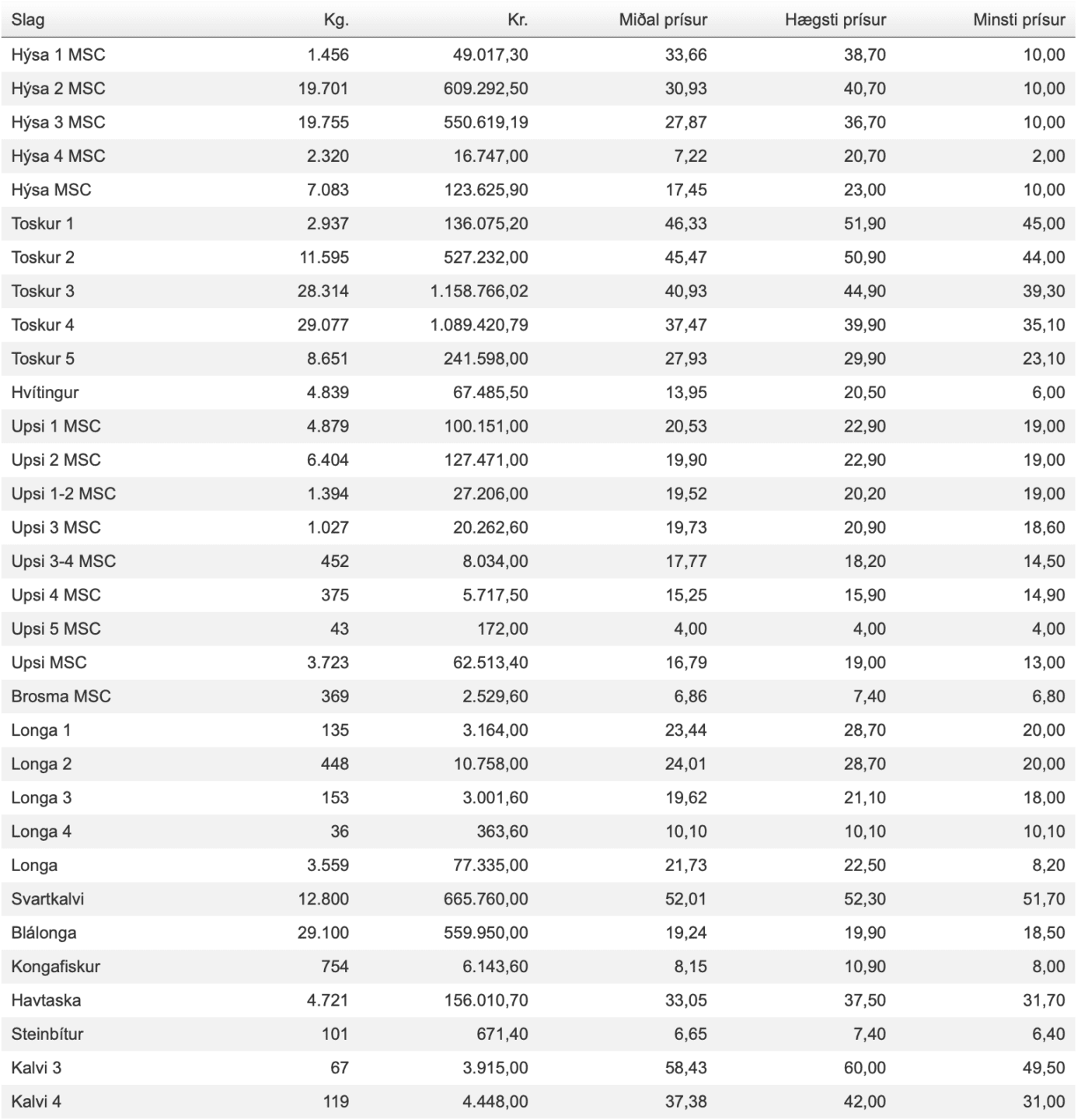 Prísir á Fiskamarknaðinum Føroya 23. apríl.
