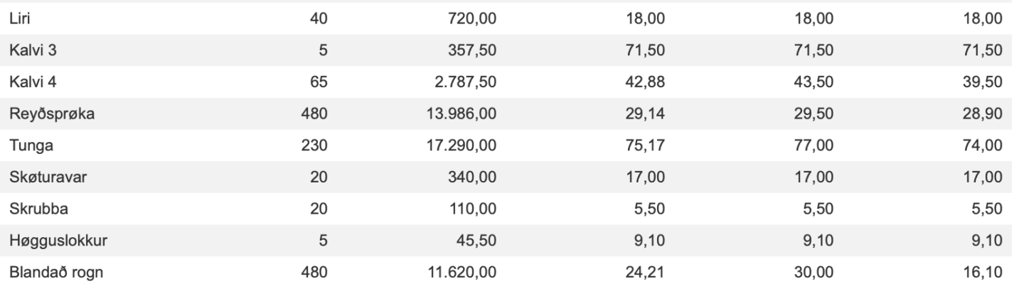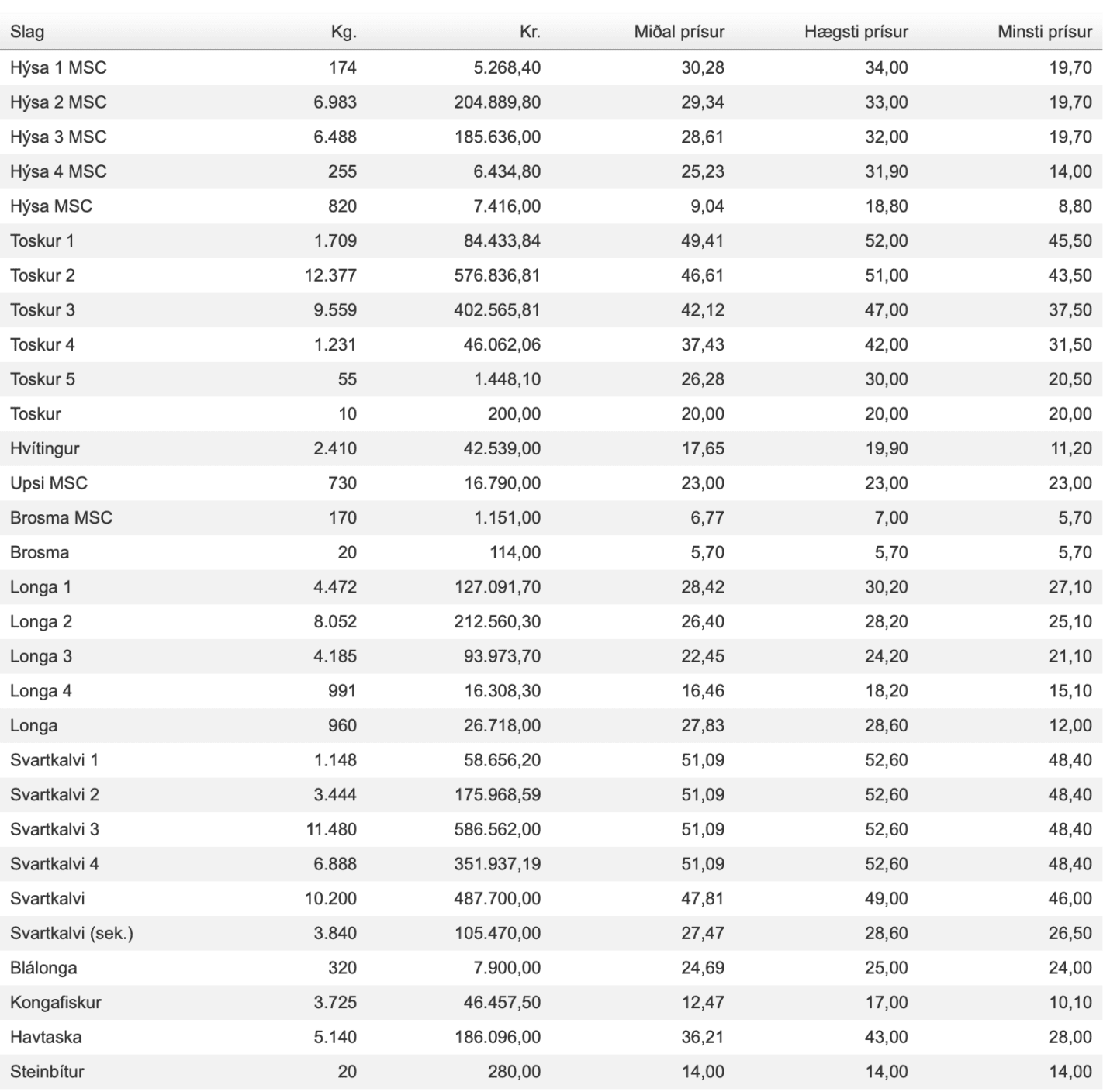 Prísir á Fiskamarknaðinum Føroya 23. mars.